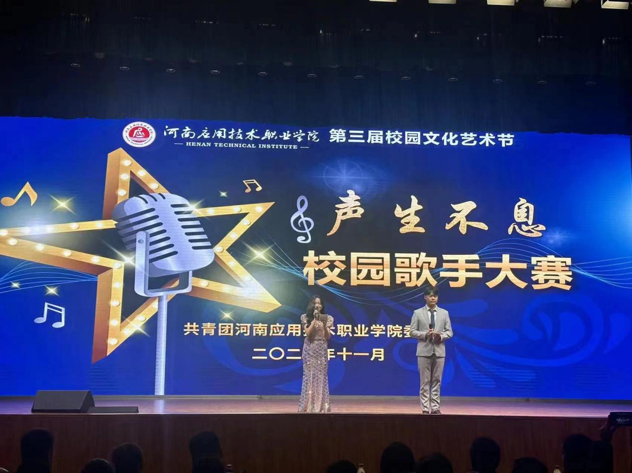 为丰富同学们的校园文化生活,营造一个积极向上、百花齐放的校园文化氛围,给同学们提供一个展现自我的舞台。2023年11月14日,河南应用技术职业学院第三届校园文化艺术节隆重开幕,Beat365官方网站选手在声生不息校园歌手大赛中光彩四溢。