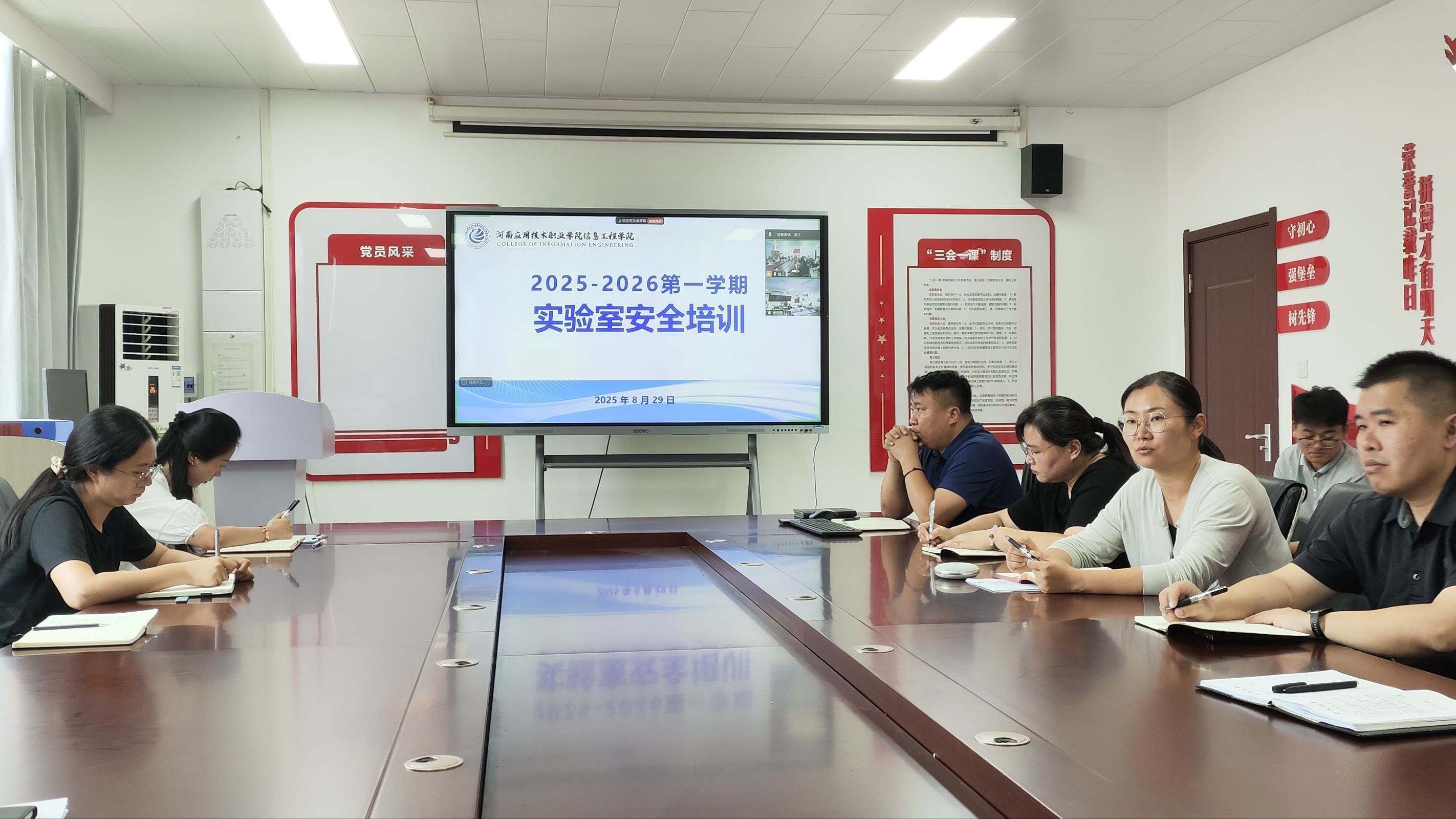 夏丽珍、齐峰分别面向Beat365官方网站郑州、开封两校区教师开展实训室安全培训,进一步明确各岗位职责,着重强调实训管理员是所在场所安全管理的第一责任人,须严格落实日常巡查、隐患整改等制度。
