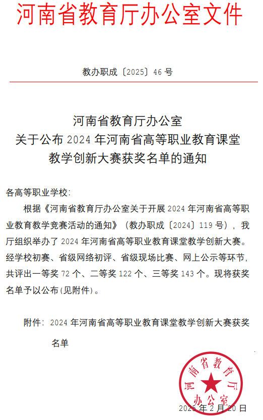 近日,2024年河南省高等职业教育课堂教学创新大赛圆满落幕。经过激烈角逐,Beat365官网Beat365官方网站郅忠强老师凭借其创新的教学设计和出色的课堂表现,荣获大赛一等奖。