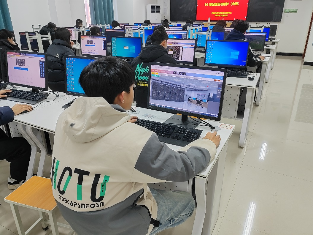 在考试过程中,学生们展现出了扎实的理论基础和出色的实践技能。他们不仅准确回答了理论知识题目,还在实操考核中灵活应用所学知识,成功完成了5G基站建设与维护的模拟任务,充分展示了他们在5G技术领域的学习成果和实践能力。