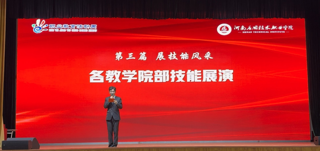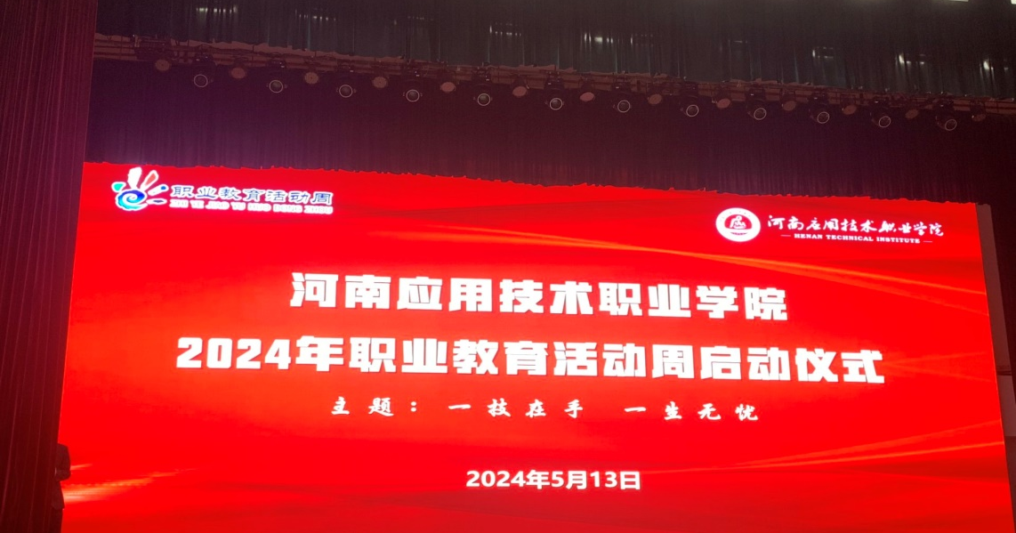 在启动仪式上,陈君丽副校长宣读学校文件《河南应用技术职业学院 2024 年职业教育活动周实施方案》,随后薄新党校长发表重要讲话,党委书记闫俊山宣布学校 2024 年“职业教育活动周”正式启动。