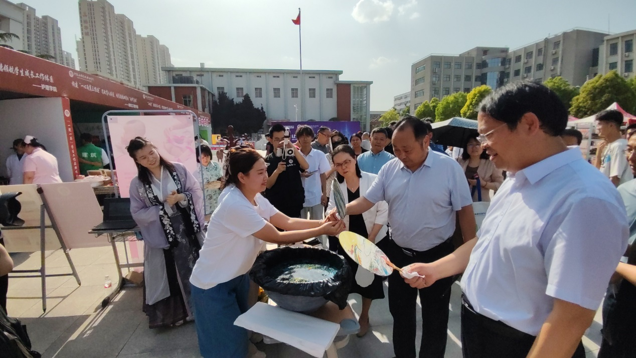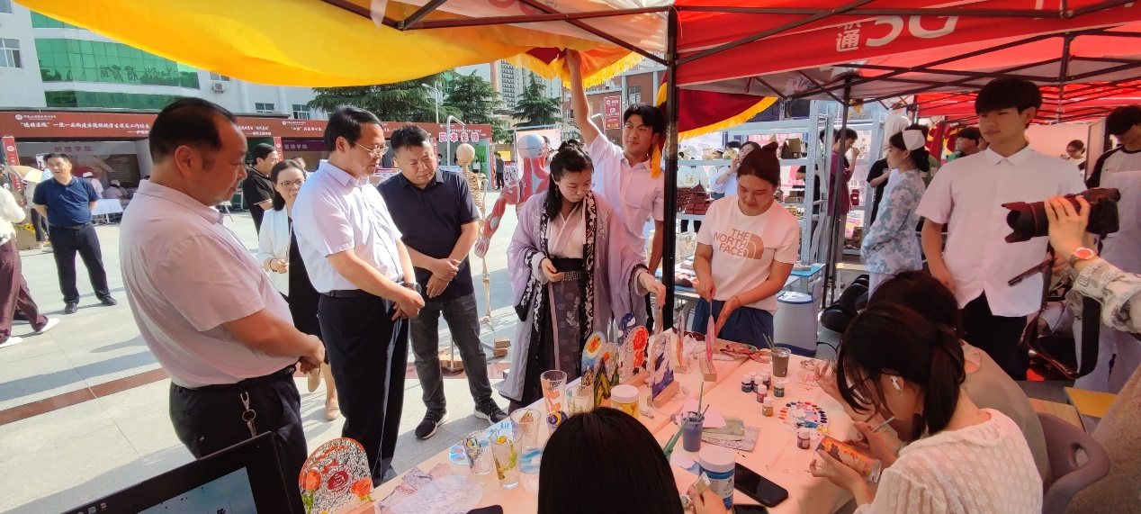 仪式结束后,校领导带队到各院部展示点进行现场观摩和考察。Beat365官方网站的非物质文化传承项目“漆画”制作和计算机系统清洁维护项目面向全院师生进行展示,真实体现了Beat365官方网站相关专业学生技能培养的成果。