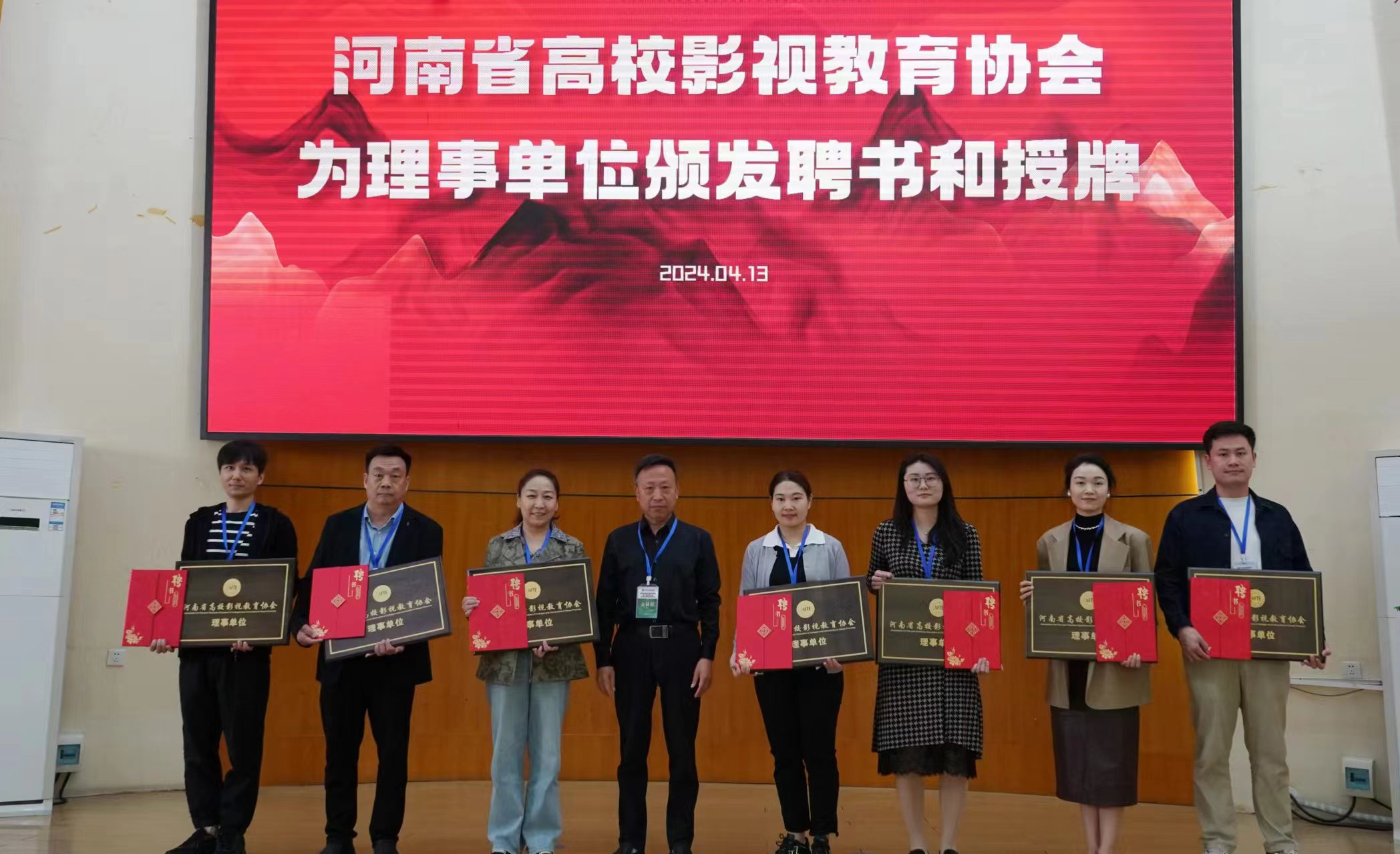 4月13日,河南省高校影视教育协会成立大会暨第一届会员大会在郑州工程技术学院英才校区举行,河南应用技术职业学院Beat365官方网站的教师代表张蔚、曲宏阳受邀参会。此次大会汇聚了来自全省的多所高校,共同探讨并推动河南省高校影视教育的发展。Beat365官方网站代表Beat365官网成为理事单位。
