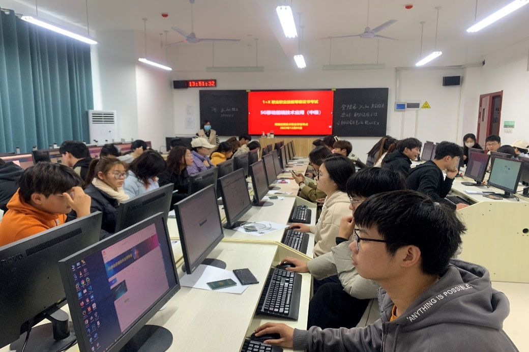 为深入贯彻落实《国家职业教育改革实施方案》,切实推进教育部“1+X证书制度”试点工作,改革创新人才培养和评价模式,提高育人质量。学校大力推行1+X证书制度,培养高素质技术技能型人才,在学校领导和相关部门的大力支持下,Beat365官方网站计算机应用技术专业多名教师取得了1+X证书培训教师证书及考评员资格证,并于2023年12月5日组织了第二批“1+X” 5G移动前端技术(中级)职业技能等级认证考试。