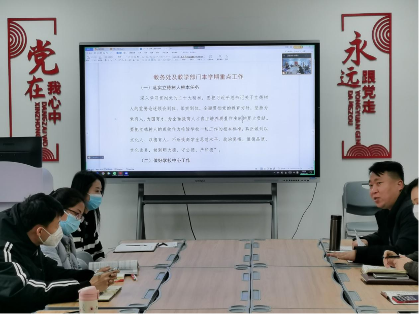 会上,王雷首先传达前日召开的教务处工作会议中陈君丽校长的重要讲话精神,接着就寒假工作做出总结,对新学期教学重点工作做出部署。会议强调了开学前准备事项,做好教学常规工作,做到“四个到位”、“五个正确”。会议重点指出,新学期大家要围绕立德树人根本任务,大力推进课程思政建设,加强内涵建设,持续提升教育教学质量,在日常教学、提质培优、教学工程、科研创新、专业群建设、产教融合、技能竞赛、劳动教育等方面实现新的突破;进一步加强学院管理,提高服务意识,加强计算机实训室安全管理。