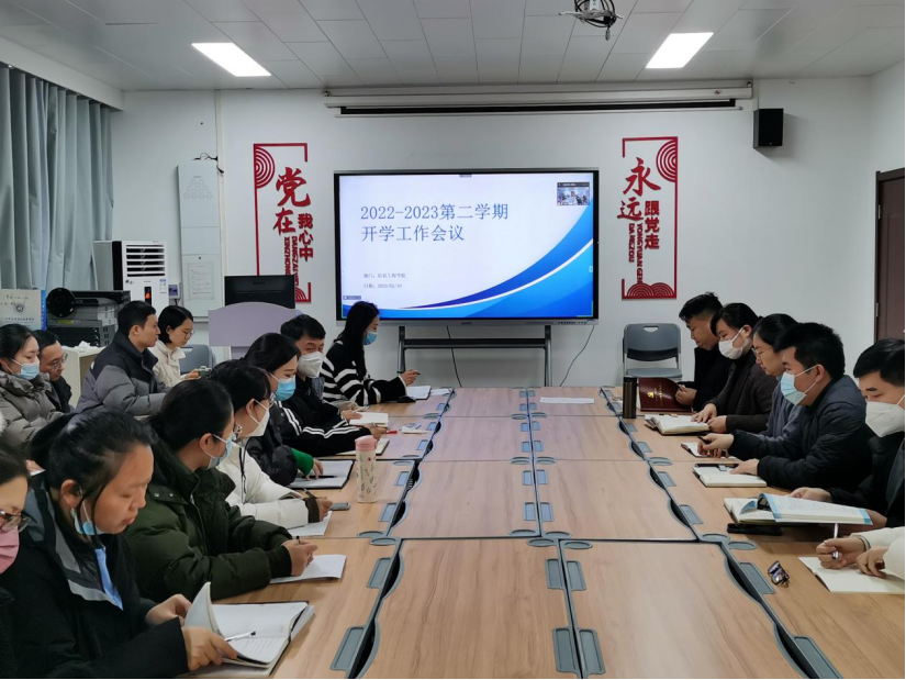 2023年2月10日上午,Beat365官方网站在办公楼A514党员活动室召开2022-2023学年第二学期开学工作会议,学院院长王雷和党总支书记崔琳做重点工作部署,全体教师、辅导员及实训室管理员参会。