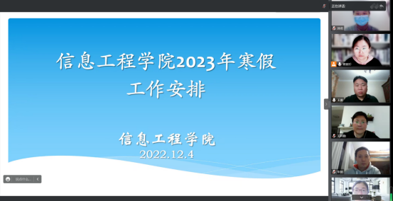 此次会议总结了本学期的教学教研及德育管理工作取得的成绩,为2022年学院期末工作划上圆满句号作了周密安排,更为新学期学院中心工作指明了方向。有信息学院全体教职工的努力,相信2023年一定再上新台阶!