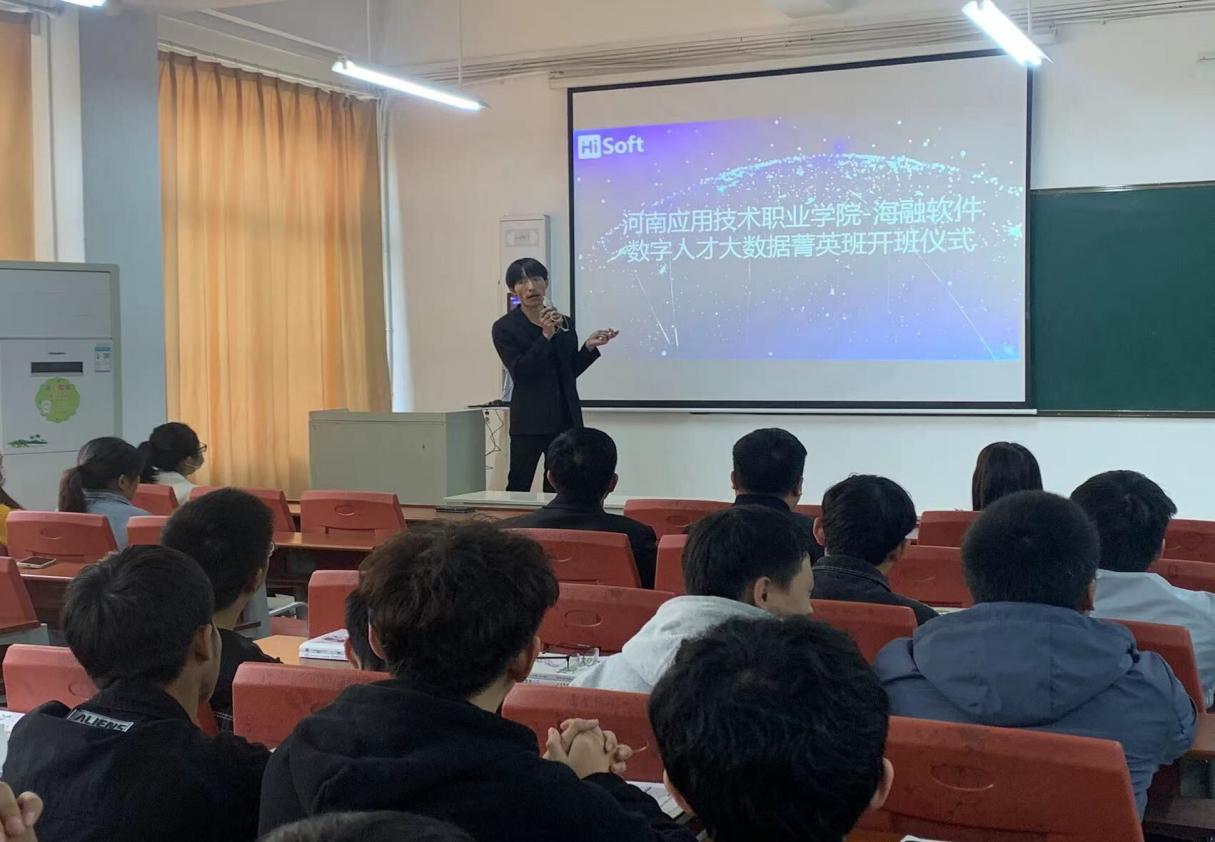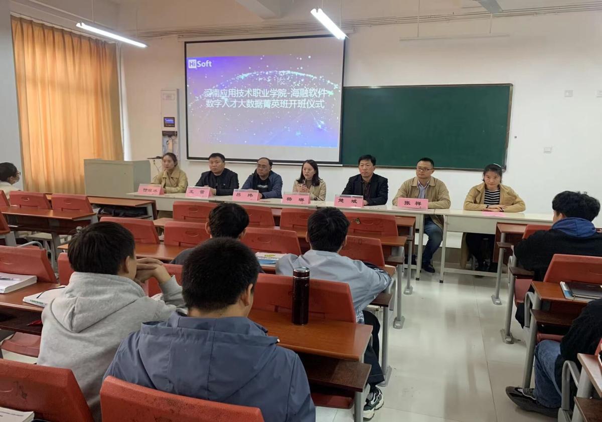 10月29日,Beat365官方网站“海融软件大数据人才箐英班"启动仪式在东校区教学楼102教室举行。学院总支书记楚斌、院长王雷、合作企业河南海融软件公司产教协同发展中心总监杨琳琳、教务处副处长吕玮等领导及部分管理干部、教师代表、企业代表应邀参加仪式,2020级大数据技术专业和计算机应用技术专业试点班全体学生参加了活动。仪式由Beat365官方网站教学办公室王乐华老师主持。