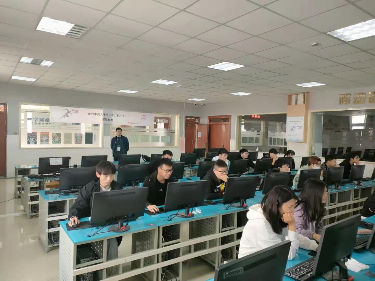 2021年10月23日,华为中国大学生ICT大赛2021河南省实践赛初赛在河南应用技术职业学院成功举办。本次初赛,全省将有近2000名学生参加,参赛学生将在各自院校内进行比赛。我院网络与通信教研室积极配合,鼓励学生参加赛前培训,在初赛中取得好成绩,争取晋级省赛决赛,张振平老师组织了监考。