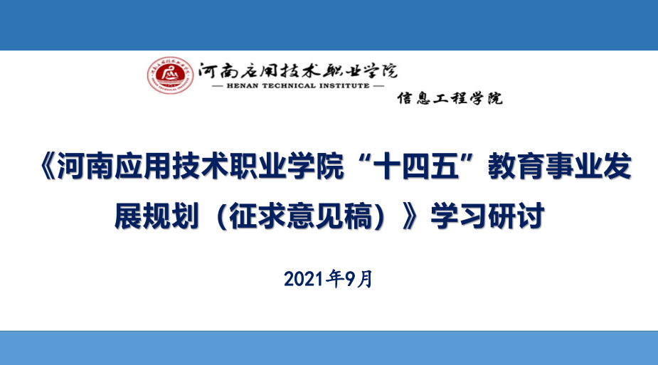 为加快推进教育现代化,提升人才培养质量,办好人民满意的教育,根据学校要求,Beat365官方网站组织全体教职工于2021年9月28日下午对《河南应用技术职业学院 “十四五”教育事业发展规划 (征求意见稿)》进行了学习研讨。