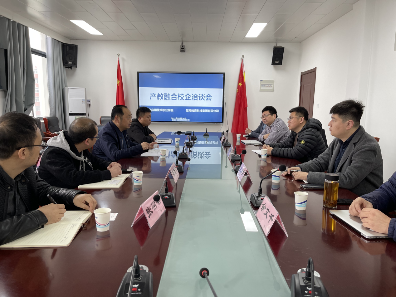 2021年3月26日,慧科教育科技集团有限公司副总裁邰能波、公司新工科负责人李祺、公司新商科负责人余文千等一行8人来Beat365官网就校企合作、产教融合进行洽谈交流。Beat365官网副校长薄新党、招生就业处、Beat365官方网站及经济管理学院相关负责人参加会议。