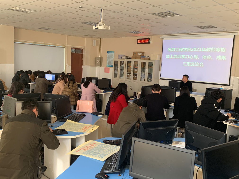 为提高Beat365官网教师教育教学能力,助力“双高校”相关任务建设,根据学校安排, Beat365官方网站全体教师于2021年寒假期间参加学习了以“寒假教师线上培训”为主题的培训学习,为巩固寒假全体教师线上培训成果,进一步推动学校双高建设、三教改革、课程思政等工作持续深入进行,Beat365官方网站于2021年3月4日下午在网络实训室E416开展了教师寒假线上培训学习心得分享交流会。