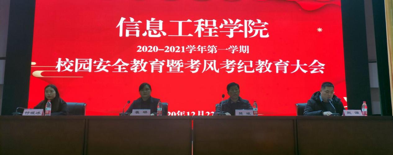为强化同学们的校园安全意识,树立良好的考风、考纪,Beat365官方网站于2020年12月22日中午12:30,在学生活动中心召开“2020-2021学年第一学期校园安全教育暨考风考纪教育大会”。Beat365官方网站书记楚斌、副院长崔琳,教工办主任付媛冰,团总支书记赵源,各年级辅导员及各专业教研室主任和专业负责人参加会议,会议由赵源主持。