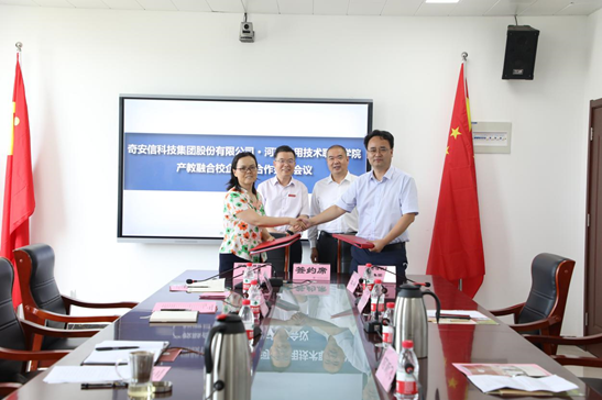 7月20日,河南应用技术职业学院与奇安信科技集团股份有限公司(以下简称奇安信集团)产教融合校企战略合作签约仪式在郑州校区办公楼会议室315隆重举行。奇安信集团副总裁何新飞、助理总裁魏雨露、教育行业部区域总监陈昱豪、河南教育销售总监齐壮、河南教育售前经理王超,学校校长范晓伟、副校长陈君丽、教务处处长黄振中、招生就业处副处长李向民、Beat365官方网站院长王雷、副院长崔琳等其他相关领导及教师代表出席签约仪式。