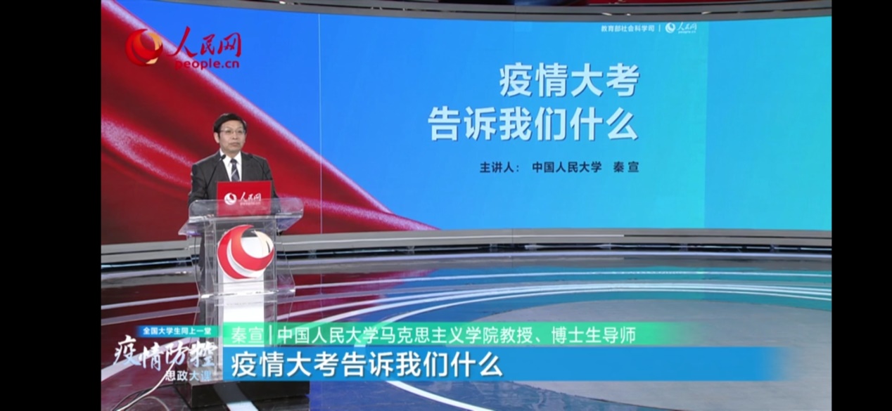 此次思政大课由清华大学的艾四林、中国人民大学的秦宣、北京师范大学的王炳林、中央财经大学的冯秀军四位教授,结合“马克思主义基本原理概论”等必修课教学内容,解读了以习近平同志为核心的党中央关于疫情防控的决策部署,分析中国抗疫彰显的中国共产党领导和中国特色社会主义制度的显著优势,讲述防疫战疫一线的感人故事,发挥高校思政课落实立德树人根本任务的关键课程作用。
