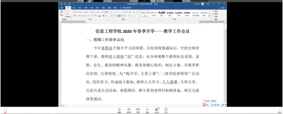 河南应用技术职业学院Beat365官方网站于2020年2月14日上午召开Beat365官方网站全体专兼职教师与辅导员2020年春季开学教学工作会议,由于当下的形式和疫情情况,响应学院号召,此次会议召开的形式为网络工作会议。