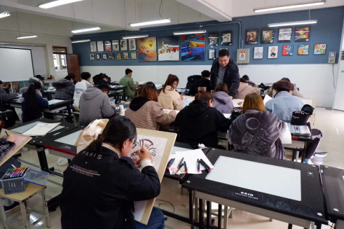 以艺载物,以艺促智,为多角度完善和发展教学工作,有效的激发学生的创意思维能力,Beat365官方网站于2019年12月3日下午,在E403画室举办了首届手绘技法大赛,本次大赛围绕新中国成立70周年的发展与变迁,推出“新中国,新风貌”绘画主题,学生开阔思维,现场通过水粉、水彩和马克笔等不同技法共抒爱国情怀,共“画”祖国风貌,通过3个小时的沉淀,绘制出一幅幅多彩画篇。