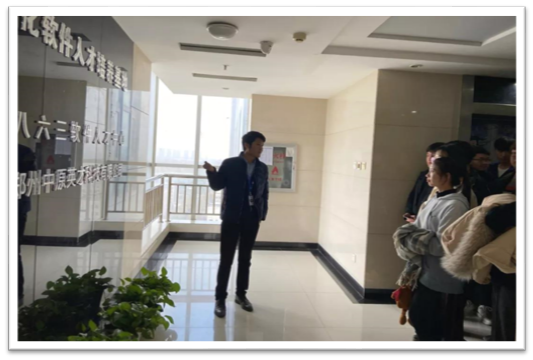 本次认知实习带队老师有吴华芹、谢妞妞、张扬、周少珂、刘卓、雷慧芳六位老师,每位老师负责一个班。在参观时间里,河南八六三软件股份有限公司的校企张银岗经理热情接待了学生们,并对同学们的到来表示了热烈的欢迎。