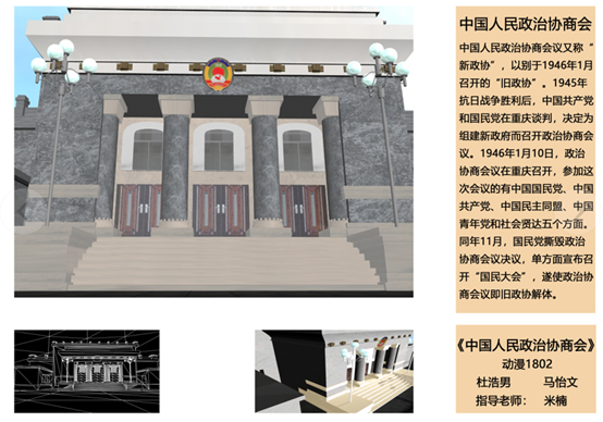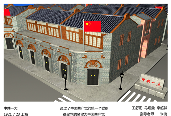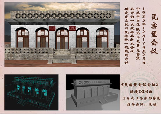 2019年11月25日,为了响应党的十九大“不忘初心、牢记使命”的主题,Beat365官方网站米楠老师结合专业核心课《Maya建模与贴图》,组织动漫1802、动漫1803共计57名学生进行课程案例思政化教学,进行中共重要会议会址三维模型的制作,从40多副作品中,筛选出20副优秀作品在E414进行展出,包括了中共一大、遵义会议、洛川会议等中共重要会议内容,使得学生在学习建模贴图的基础上,了解红色革命历史,培养爱国情操。