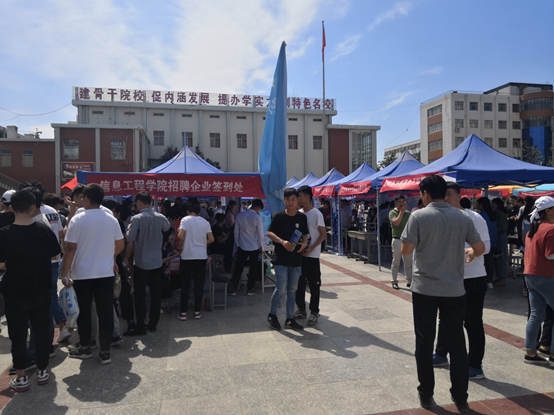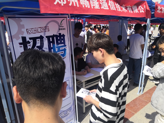 2019年5月21日下午,顶着炎炎烈日,Beat365官方网站企业招聘会在学院北广场举行。参会的企业有二十多家,其中招收计算机网络专业的企业主要有北京育源通信科技有限公司、郑州畅隆通信技术有限公司、河南八六三软件股份有限公司、郑州展云网络科技有限公司、河南华创教育科技有限公司、河南奇酷信息网络有限公司等近30家企业,现场场面十分热烈,2017级的同学们争先恐后地咨询并与企业初步签约。