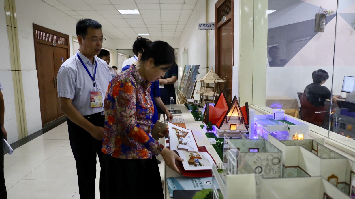 2018年6月14日,在新实训楼E414实训室,信息学院开展艺术设计类专业毕业设计成果展。本次成果展汇集了视觉传播设计专业和动漫设计制作专业的近40余项学生作品,集模型设计、VI手册设计、画册作品集、手绘装饰画、动画短片作品、微电影作品等品类,展示了信息学院人才培养的水平和质量,为专业改革和学生技术技能提升提供了可借鉴的成果。河南省高校纪工委书记、省教育厅纪检组长李莉华、学校校长姚勇、副校长赵玉奇等厅、校级领导和校相关部门负责人莅临本次展览。