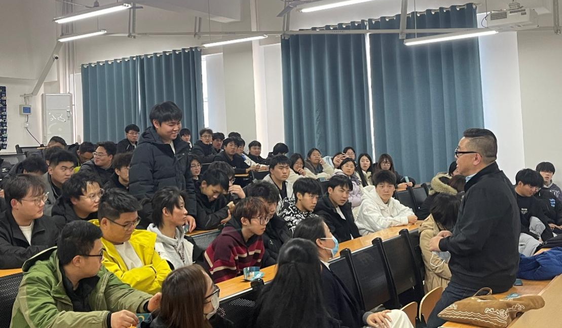 教师研讨结束后,师生交流活动于D303教室随即开展。加方代表于主任通过视频生动展示了加拿大的风土人情,系统介绍了中外合作办学项目的核心优势、加拿大高校留学政策及国际人才职业发展路径,外籍教师代表则针对本学期授课情况、学生课堂表现进行了简要总结,深入分享了加方课程的教学特色及丰富的海外学习资源,互动环节中同学们热情高涨。