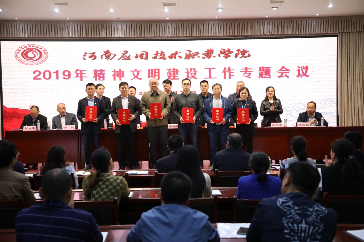 会上,副校长赵玉奇代表校党委宣读了《关于表彰2018年度“文明处室(院部)”、“文明教研室”、“文明食堂”、“文明职工”的决定》,2018年Beat365官网共表彰文明处室(院部)8个,文明教研室13个,文明食堂6个,文明职工36人。校领导为受表彰集体进行了颁奖。