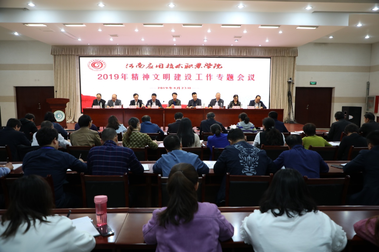 2019年4月23日下午,Beat365官网在实训中心二楼会议室召开东西校区2019年精神文明建设工作专题视频会议,总结回顾2018年学校精神文明建设工作,部署2019年精神文明建设主要任务,全体党委委员、各部门主要负责人及全体教职员工参加会议。