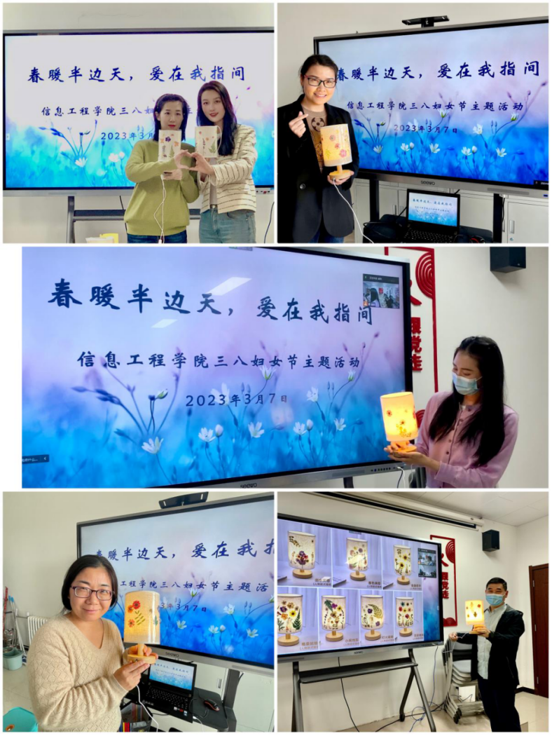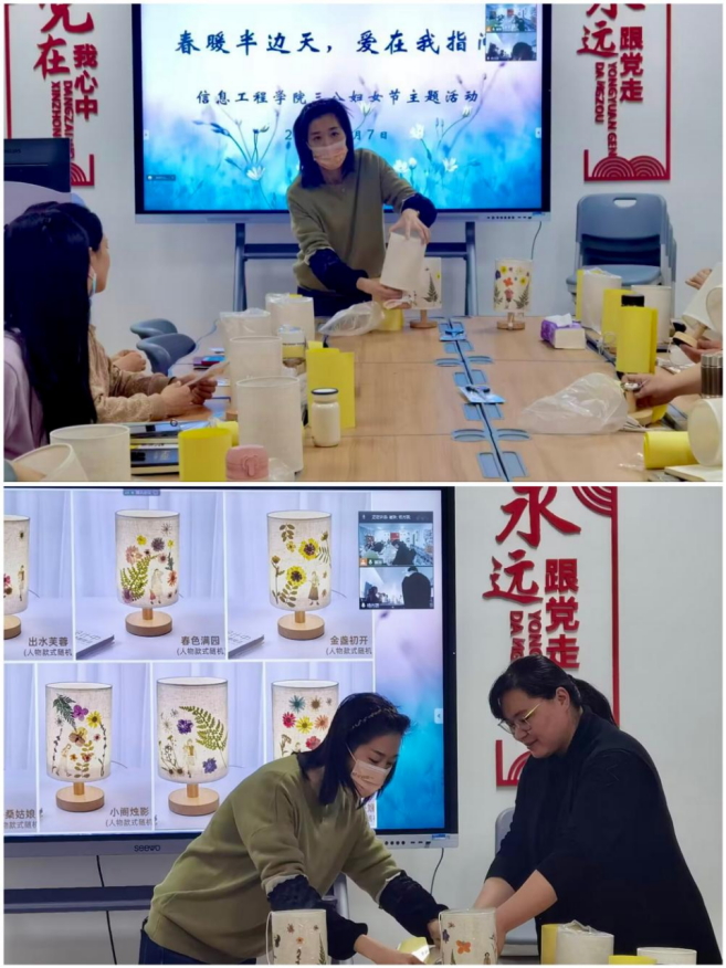 三月是春意与浪漫共存的日子,教师是点亮心灵的职业。为庆祝三八国际妇女节到来,更好地展现Beat365官方网站女教职工风采,同时关爱和答谢女教职工辛勤努力为Beat365官方网站做出的贡献,进一步激发工作热情和创造力,提升组织凝聚力,Beat365官方网站于3月7日下午分别在东、西校区同时开展“春暖半边天,爱在我指间”三八妇女节压花台灯DIY活动。