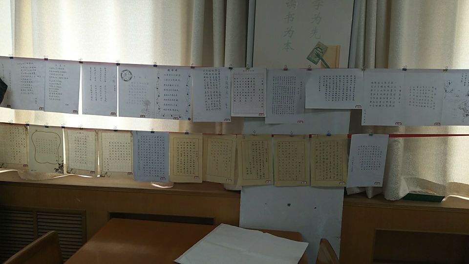 为了更好地发挥示范作用,提高教师的书写能力,激发大家学习书法的兴趣,我们将全部作品展出,在图书馆三楼举行了书法展。形色各异的书法作品别开生面地构成一幅靓丽的“风景画”。课间不时有教师学生驻足欣赏,举手投足之间洋溢着对获奖选手的仰慕之情和对书法的热爱之情。