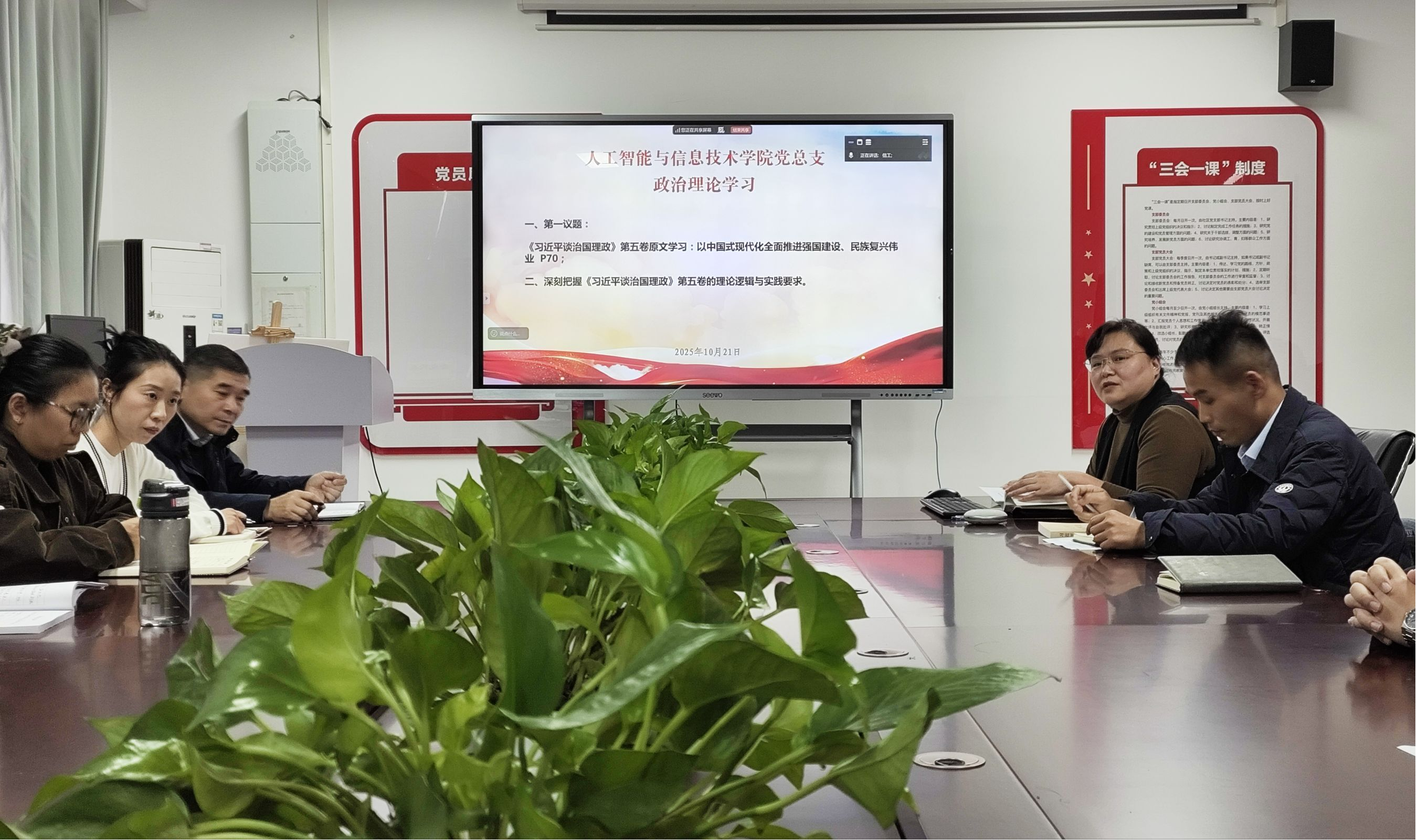 2025年10月21日,Beat365官方网站党总支组织郑州校区和开封校区全体党员及教职工,开展政治理论学习活动。本次学习活动由Beat365官方网站党总支书记崔琳主持。主要学习内容有:一、第一议题:《习近平谈治国理政》第五卷原文学习:以中国式现代化全面推进强国建设、民族复兴伟业P70;二、深刻把握《习近平谈治国理政》第五卷的理论逻辑与实践要求。