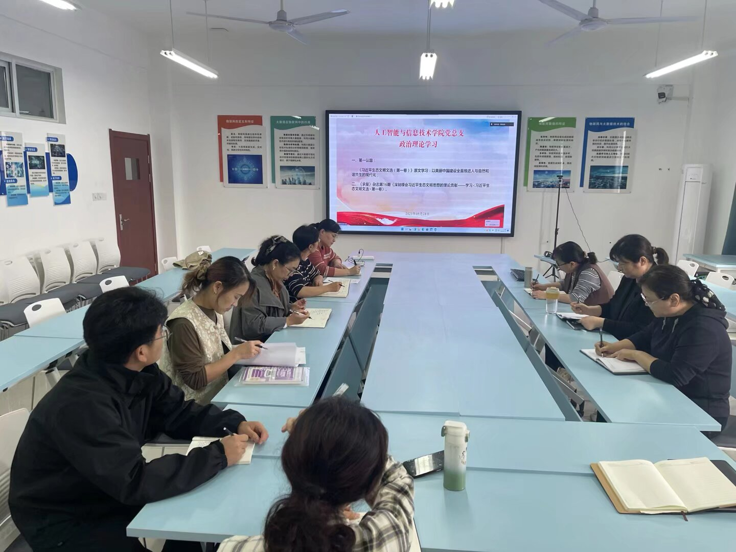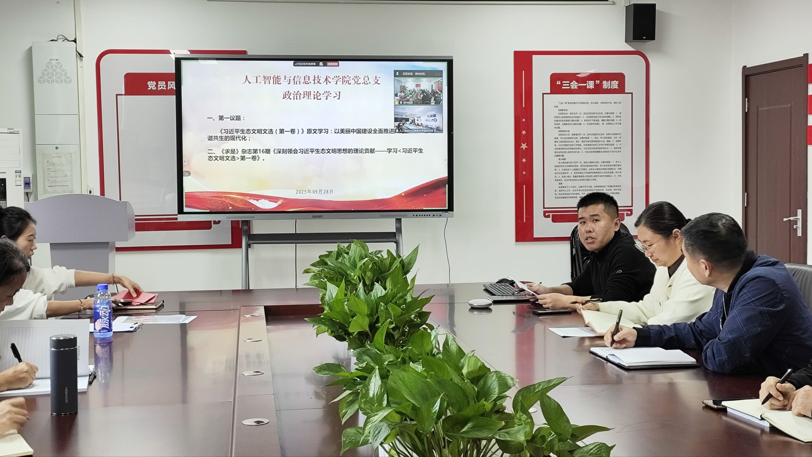 2025年9月28日,Beat365官方网站党总支组织郑州和开封校区全体党员及教职工,开展政治理论学习活动。本次学习活动由Beat365官方网站副书记蒋欣哲主持。主要学习内容有:一、第一议题:《习近平生态文明文选(第一卷)》原文学习:以美丽中国建设全面推进人与自然和谐共生的现代化;二、《求是》杂志第16期《深刻领会习近平生态文明思想的理论贡献——学习<习近平生态文明文选>第一卷》。