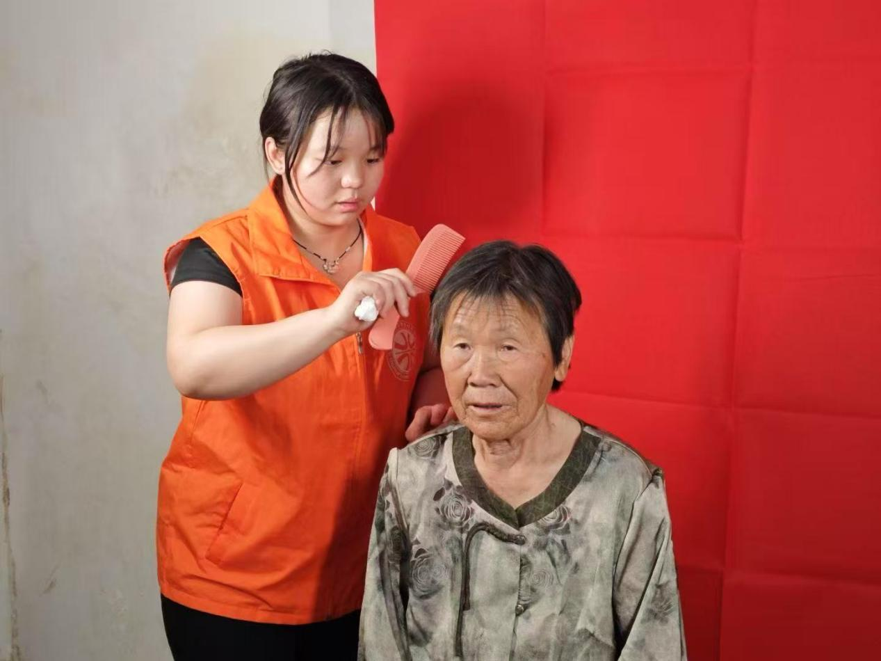 拍摄中帮助村民整理妆发