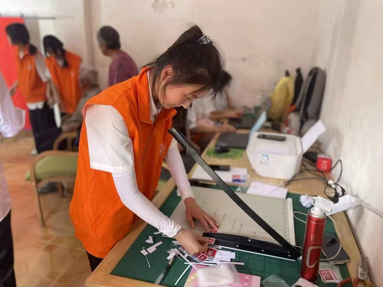 志愿者们为村民拍摄前登记