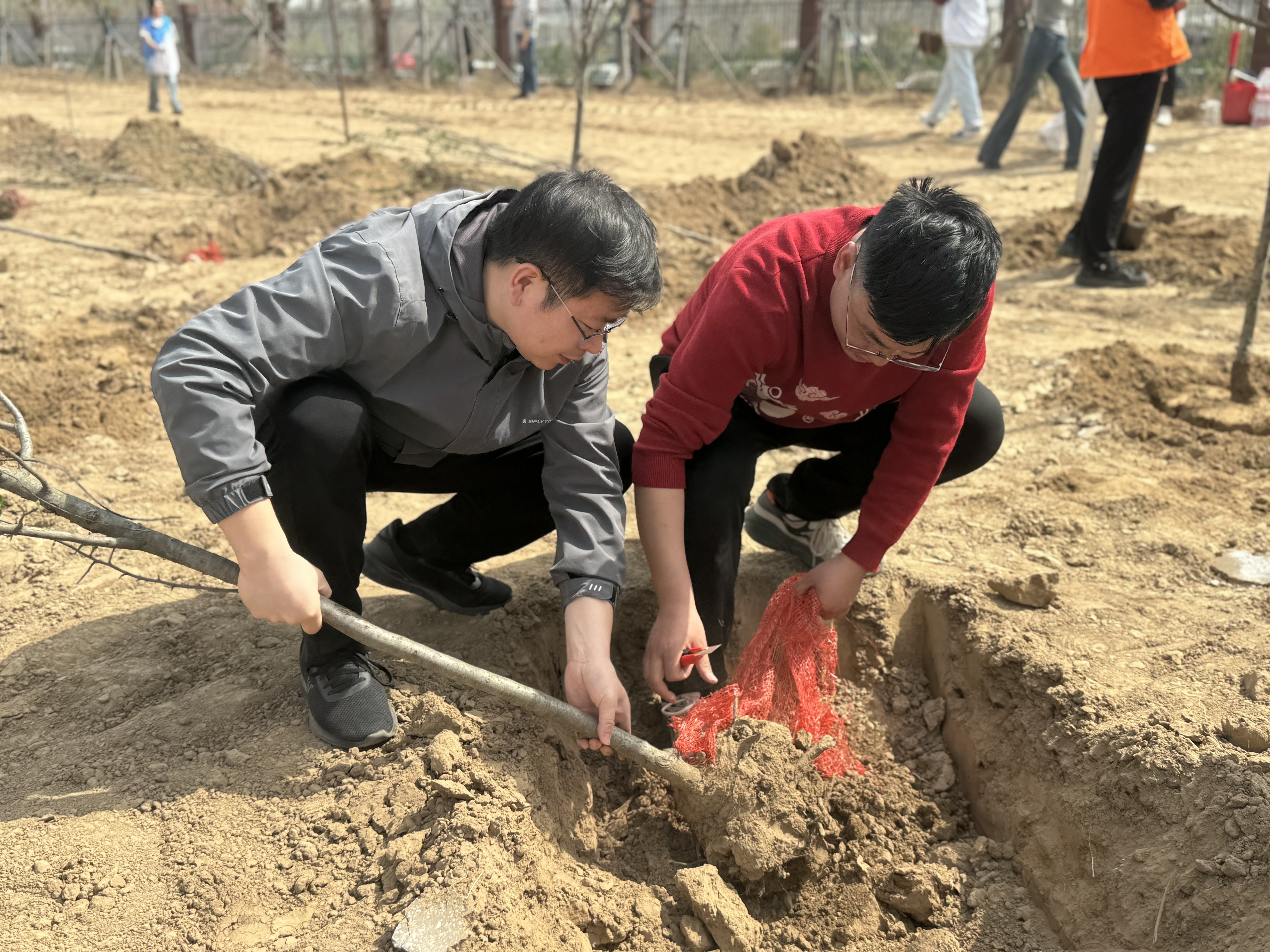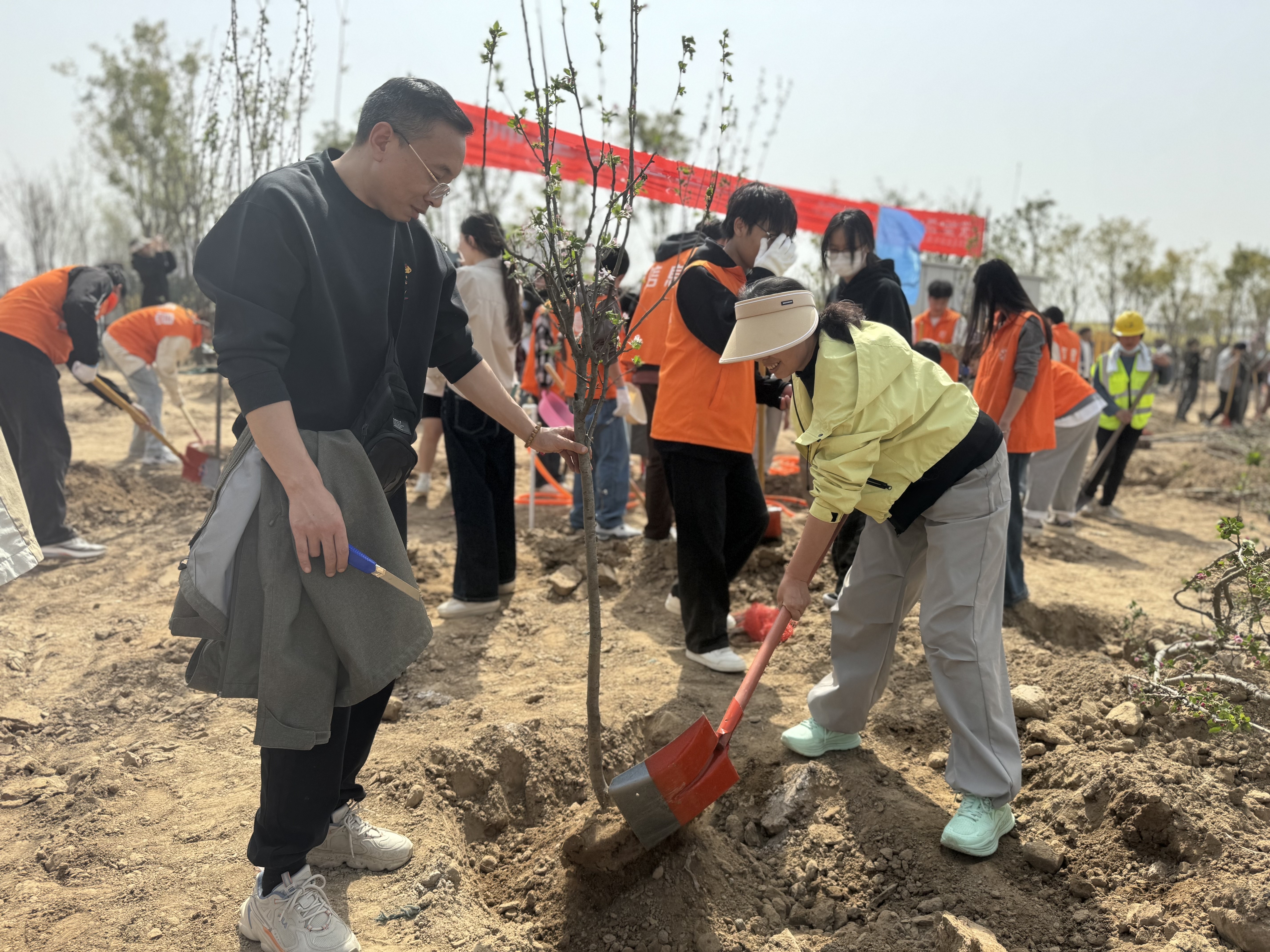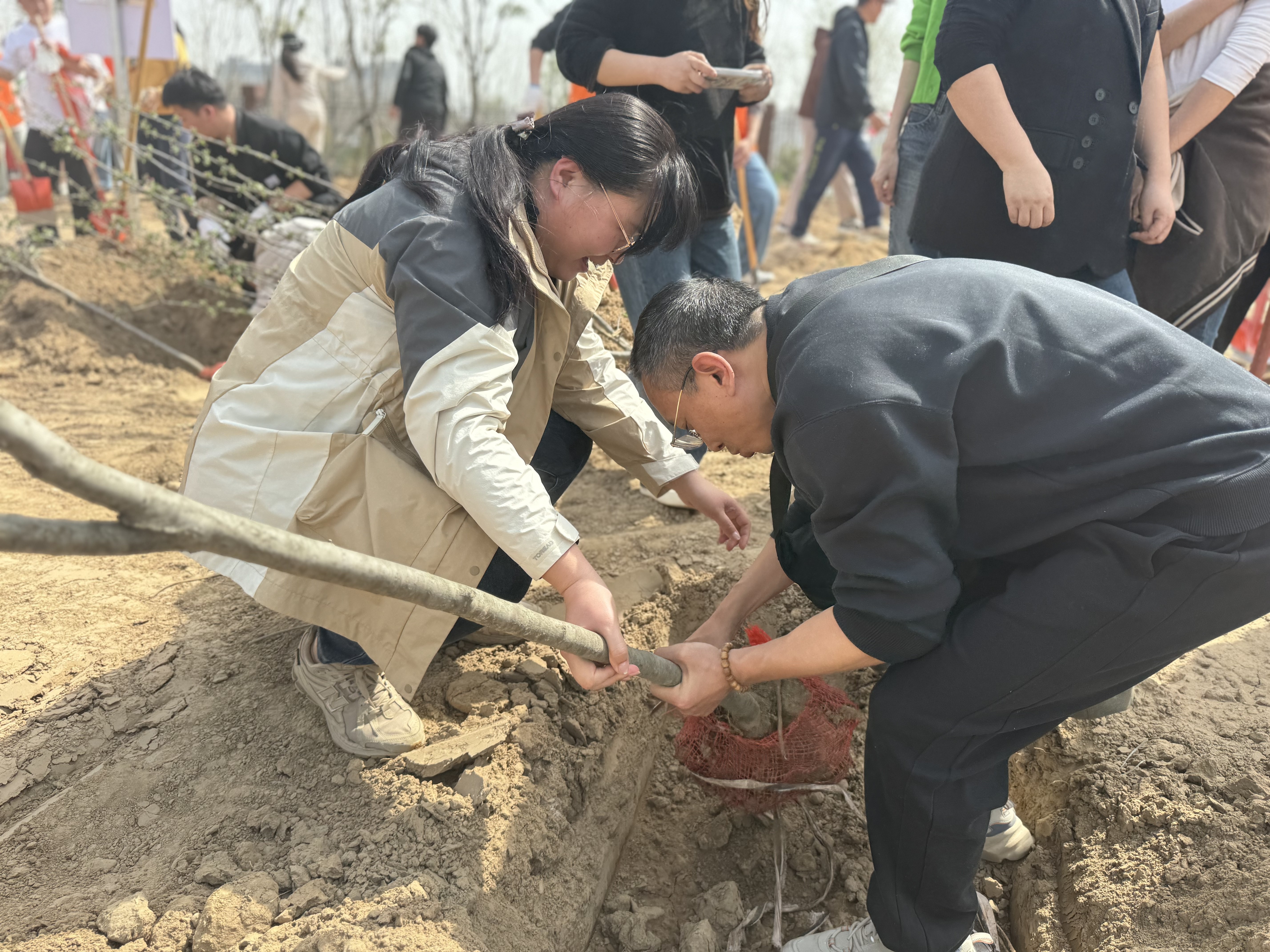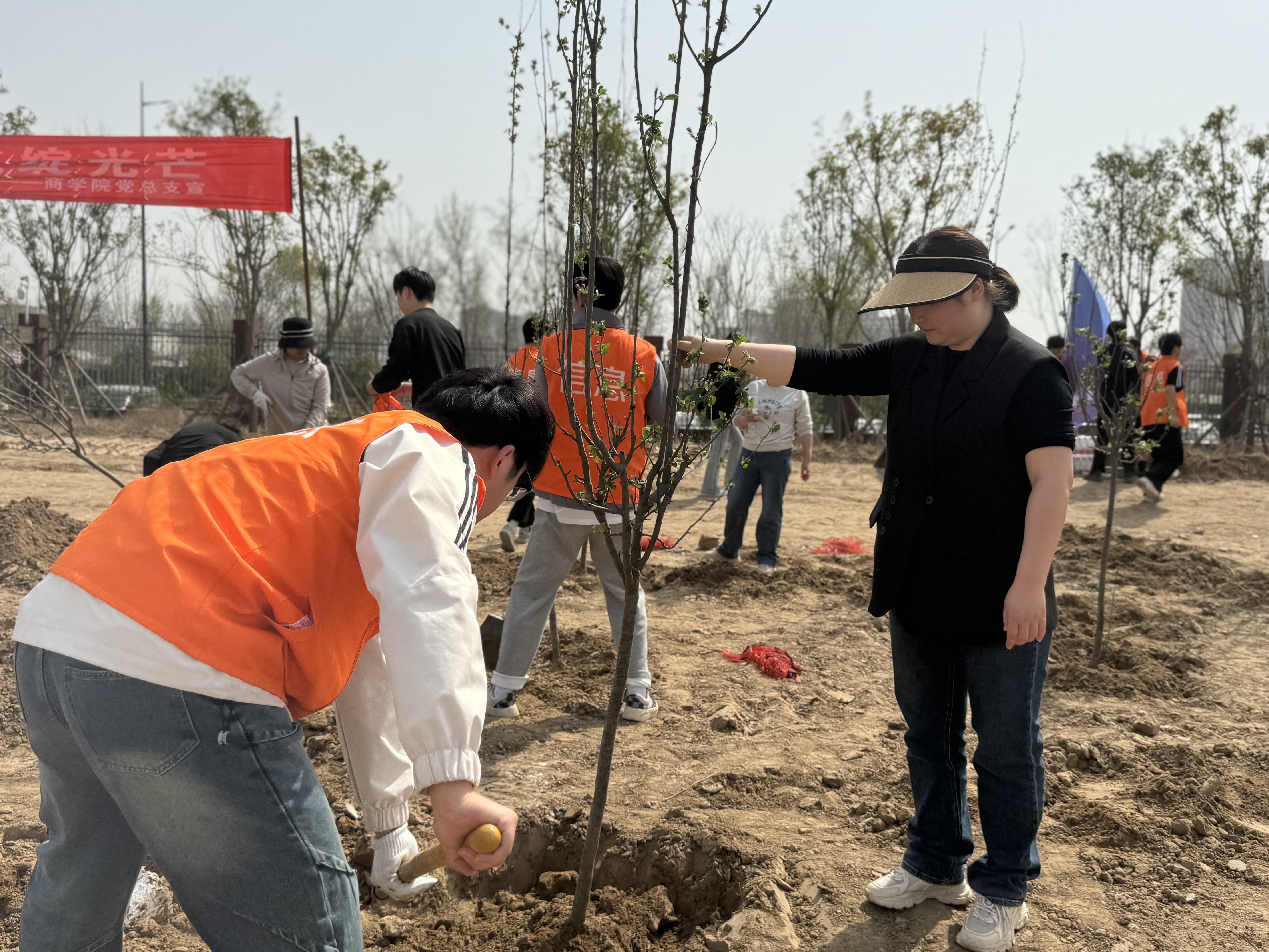 春和景明暖阳日,植树添绿正当时。为深入宣传贯彻习近平生态文明思想,进一步弘扬雷锋精神和“奉献、友爱、互助、进步”的志愿精神,结合学雷锋实践活动,2025年3月25日,Beat365官方网站党总支书记崔琳率43名党员、团员代表,在开封校区北院开展“党建引领添新绿,义务植树践初心”义务植树主题党日活动,共同以实际行动为应院增添新绿,助力生态文明建设。