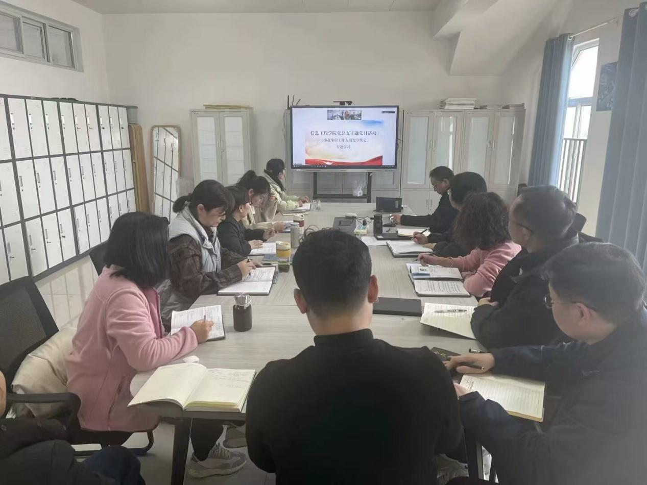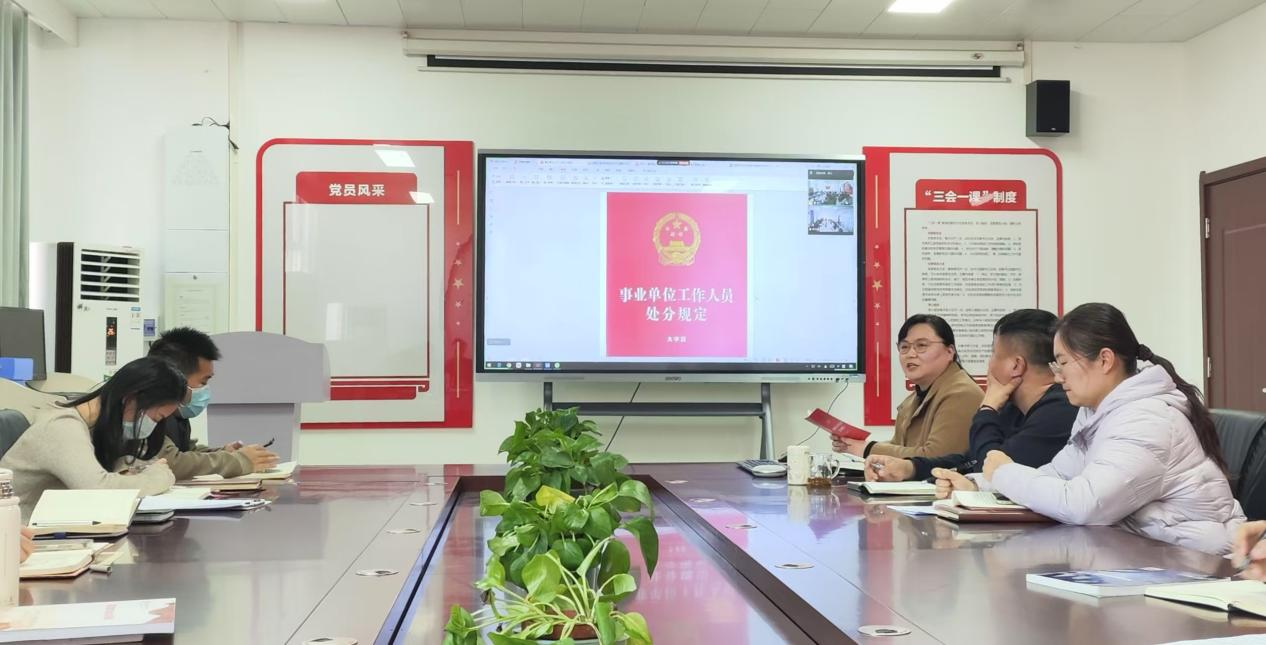为进一步巩固深化党纪学习教育成果,确保全院教师依法履职、筑牢底线,不断巩固风清气正的政治生态。2025年2月25日,Beat365官方网站党总支开展《事业单位工作人员处分规定》专题学习主题党日活动。此次专题学习由Beat365官方网站党总支书记崔琳主持,Beat365官方网站全体教师参会。