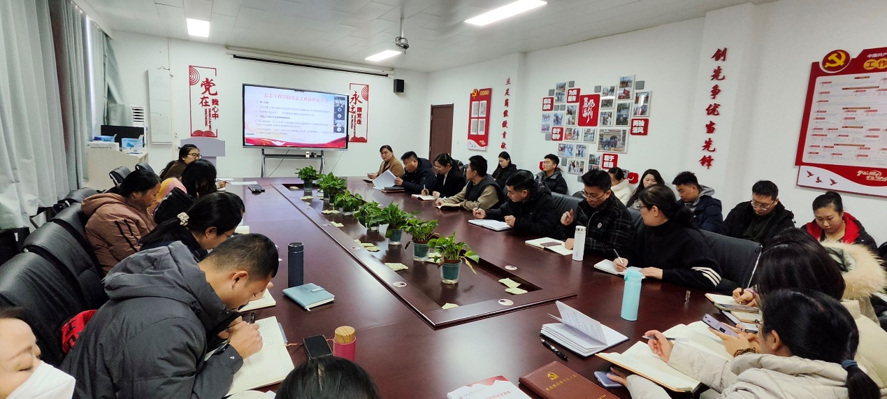 2024年12月24日,Beat365官方网站党总支组织东西校区全体党员及教职工,在西校区A514、东校区C314以腾讯会议视频连接,开展政治理论学习活动。本次学习活动由Beat365官方网站党总支书记崔琳主持。主要学习内容有:一、第一议题:1.2024年第24期《求是》杂志发表习近平总书记重要文章《深入推进党的自我革命》;2.《论教育》原文学习--牢牢掌握党对高校工作的领导权P160;二、党的二十届三中全会精神专题培训。