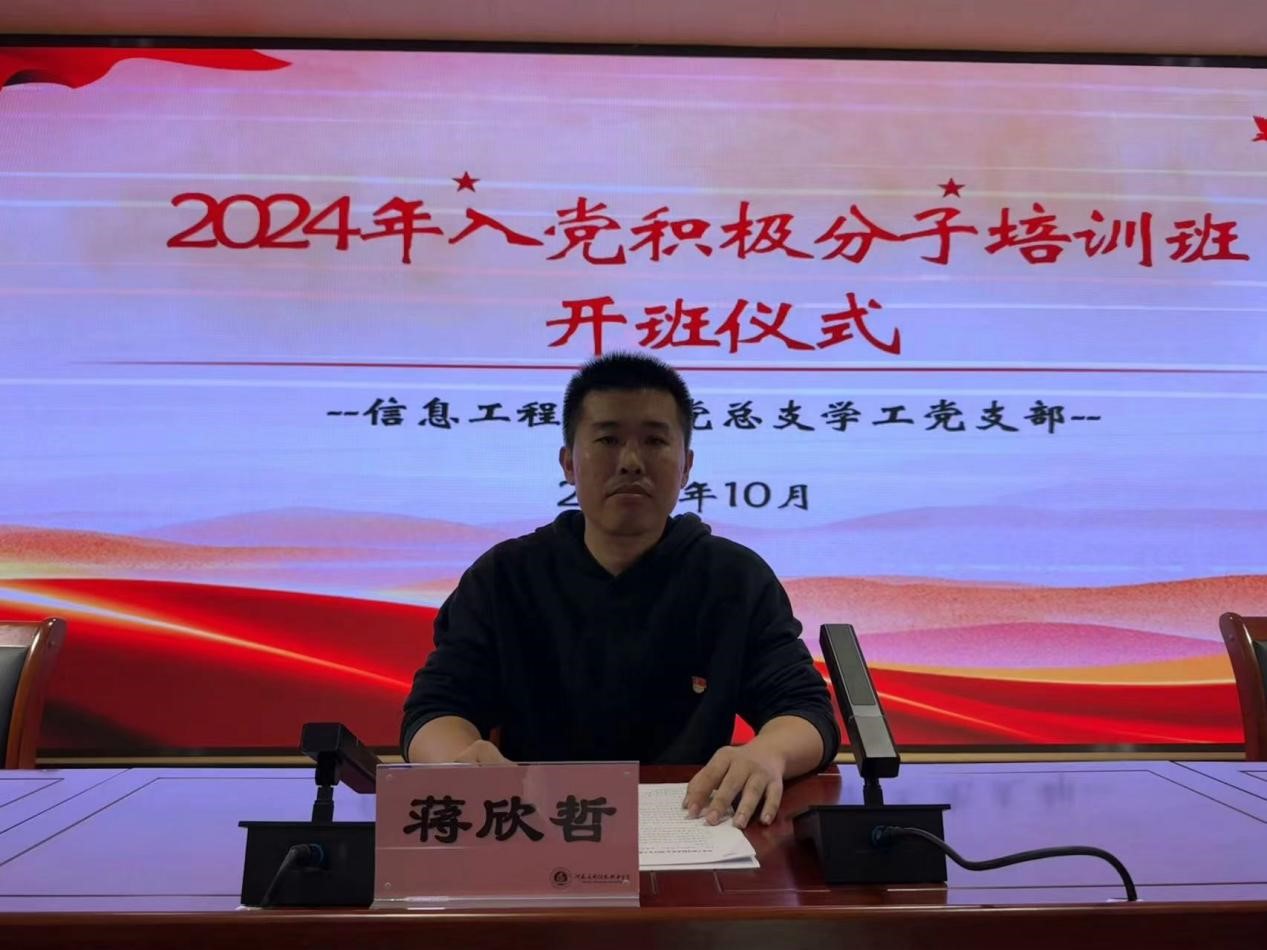 最后,蒋欣哲对23级入党积极分子提出希望,他希望大家坚持以新时代中国特色社会主义思想为指导,全面贯彻党的二十大、党的二十届三中全会精神和习近平总书记系列重要讲话精神,坚持不懈用习近平新时代中国特色社会主义思想凝心铸魂,牢记党的性质宗旨,坚定拥护“两个确立”、坚决做到“两个维护”,持续加强党的创新理论武装,坚持学思用贯通、知信行统一,把新时代中国特色社会主义思想转化为坚定理想、锤炼党性、指导实践、推动学习的强大力量,自觉做共产主义远大理想和中国特色社会主义共同理想的坚定信仰者和忠实实践者,在全面建设社会主义现代化国家新征程中贡献青春力量。