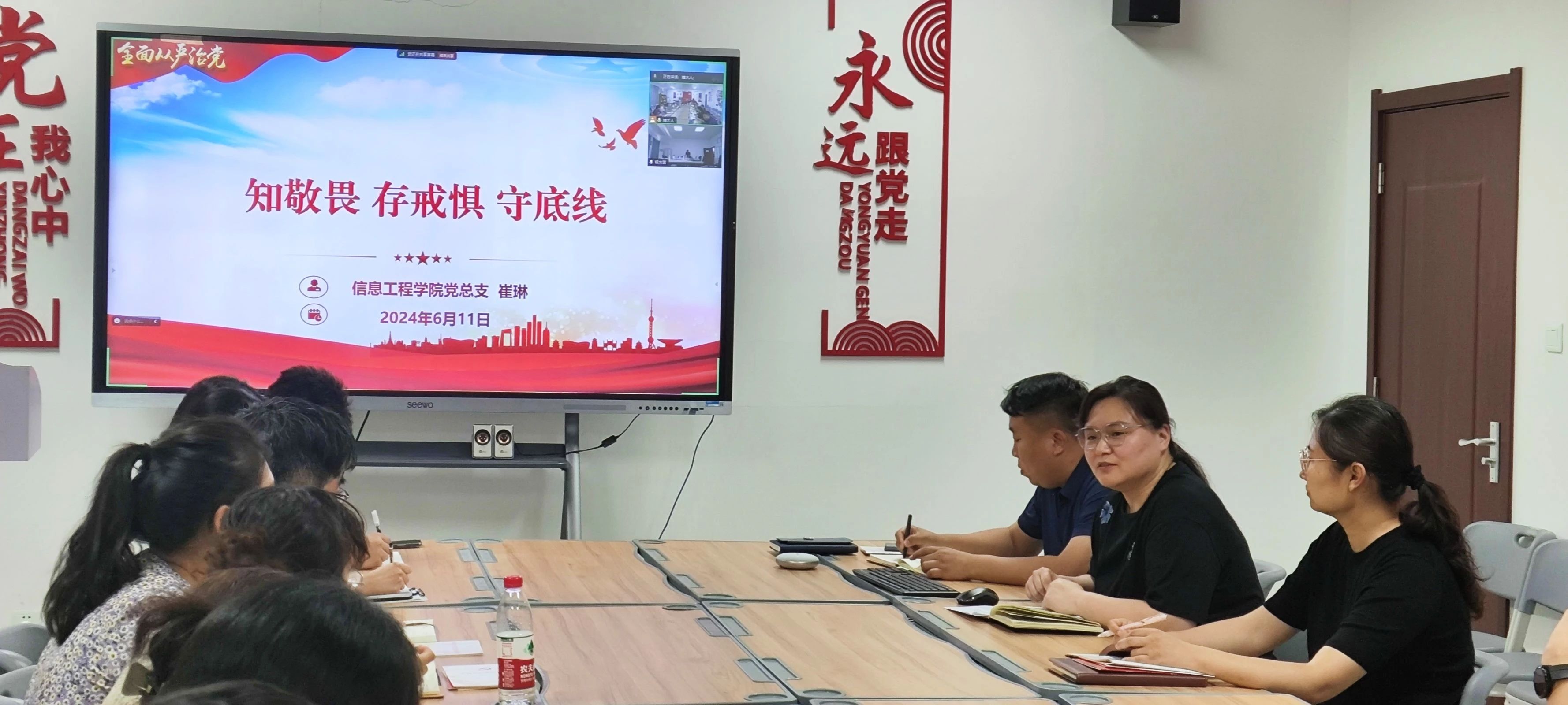 为深入开展党纪学习教育,提高基层党组织的纪律性和凝聚力,引导广大党员学纪、知纪、明纪、守纪,2024年6月11日下午,在郑州校区A514、开封校区C314,Beat365官方网站党总支书记崔琳以《知敬畏 存戒惧 守底线》为题讲授党纪学习教育专题党课,学院全体党员参加会议。