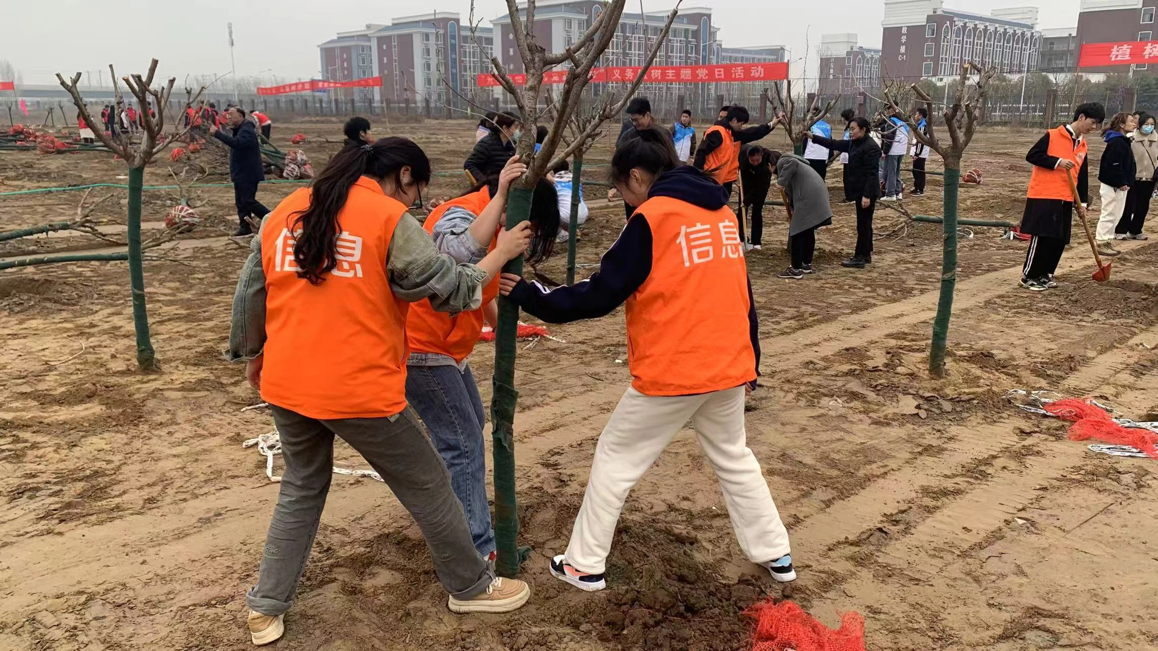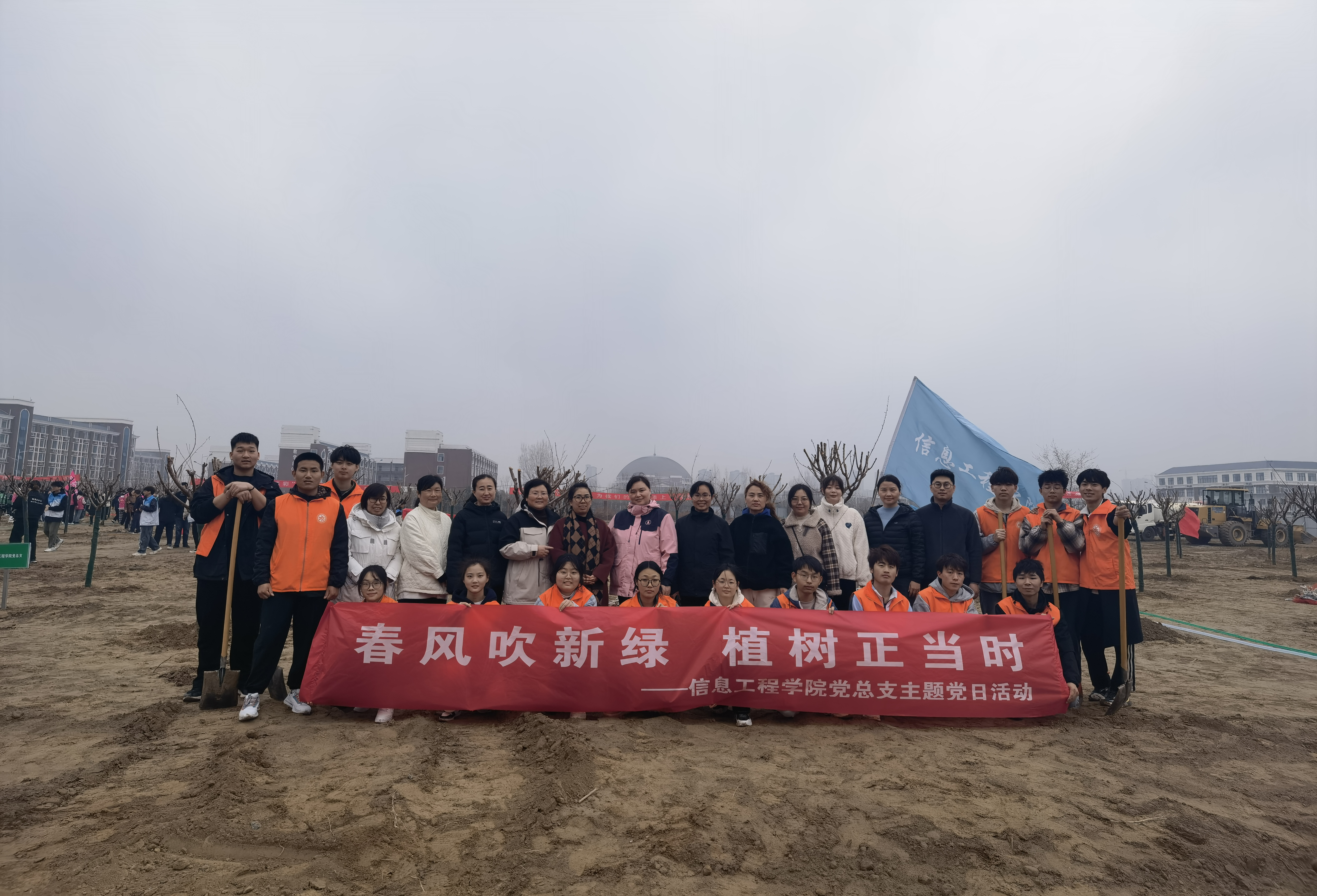 阳春三月,欣欣向荣。为营造更加美丽的校园环境,增强师生绿色发展的环保意识,固牢绿水青山就是金山银山的理念,Beat365官方网站党总支携手离退休党总支带领“小信”志愿者团队于2024年3月24日在开封校区北院开展了“春风吹新绿植树正当时”主题党日活动。