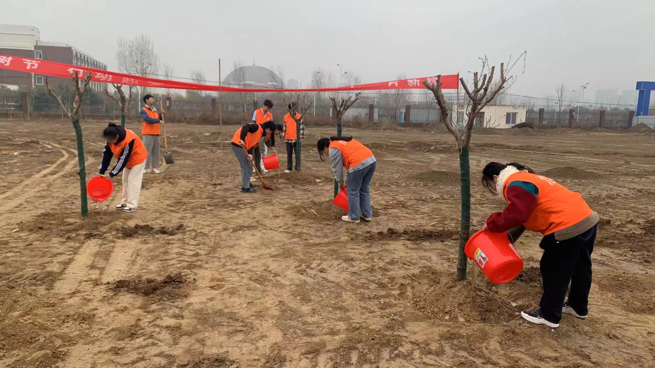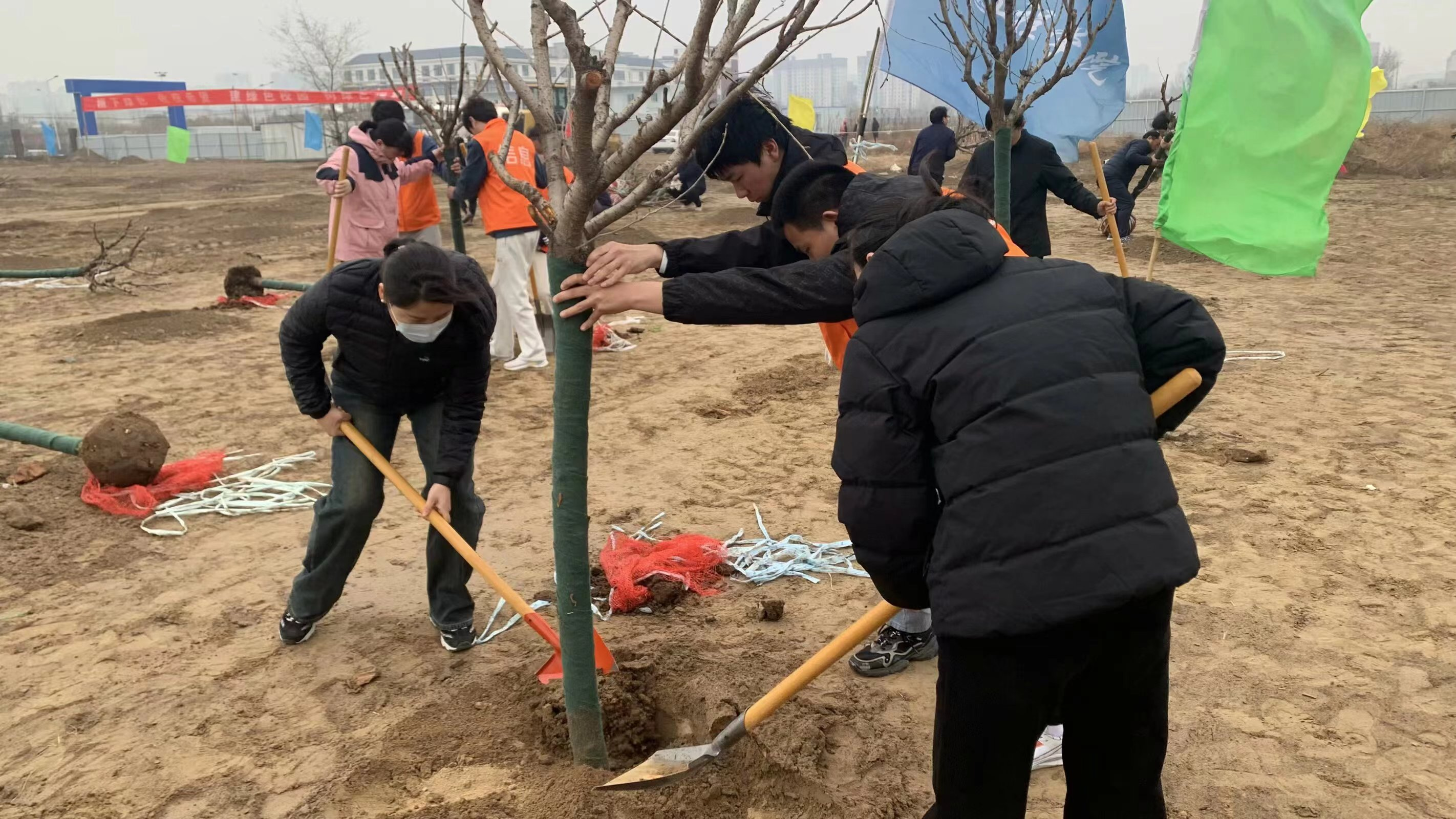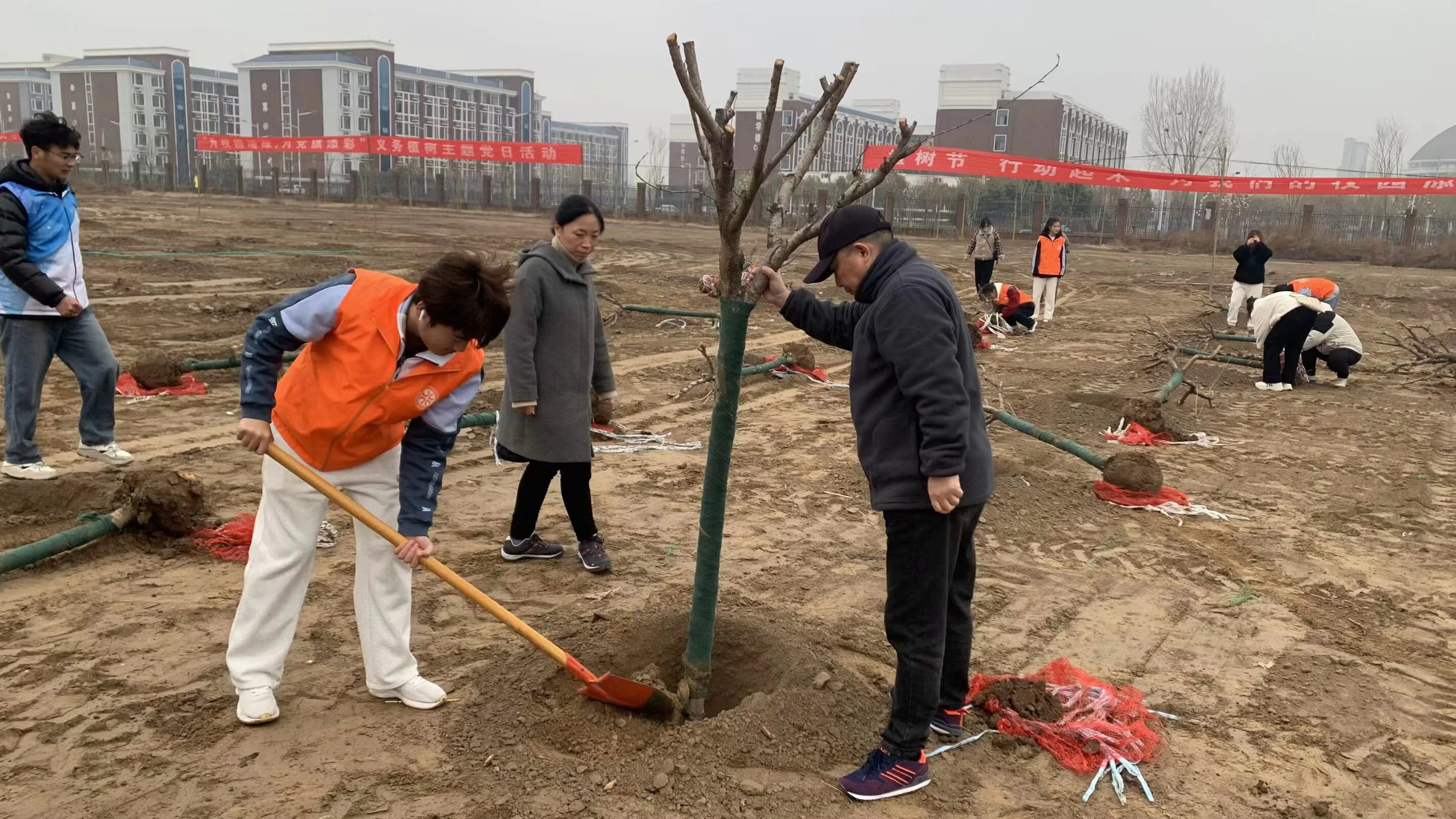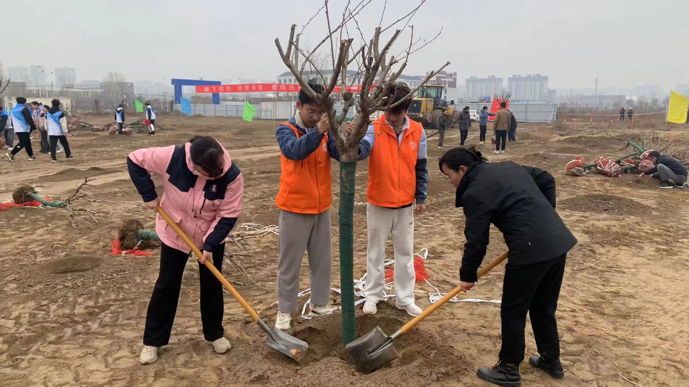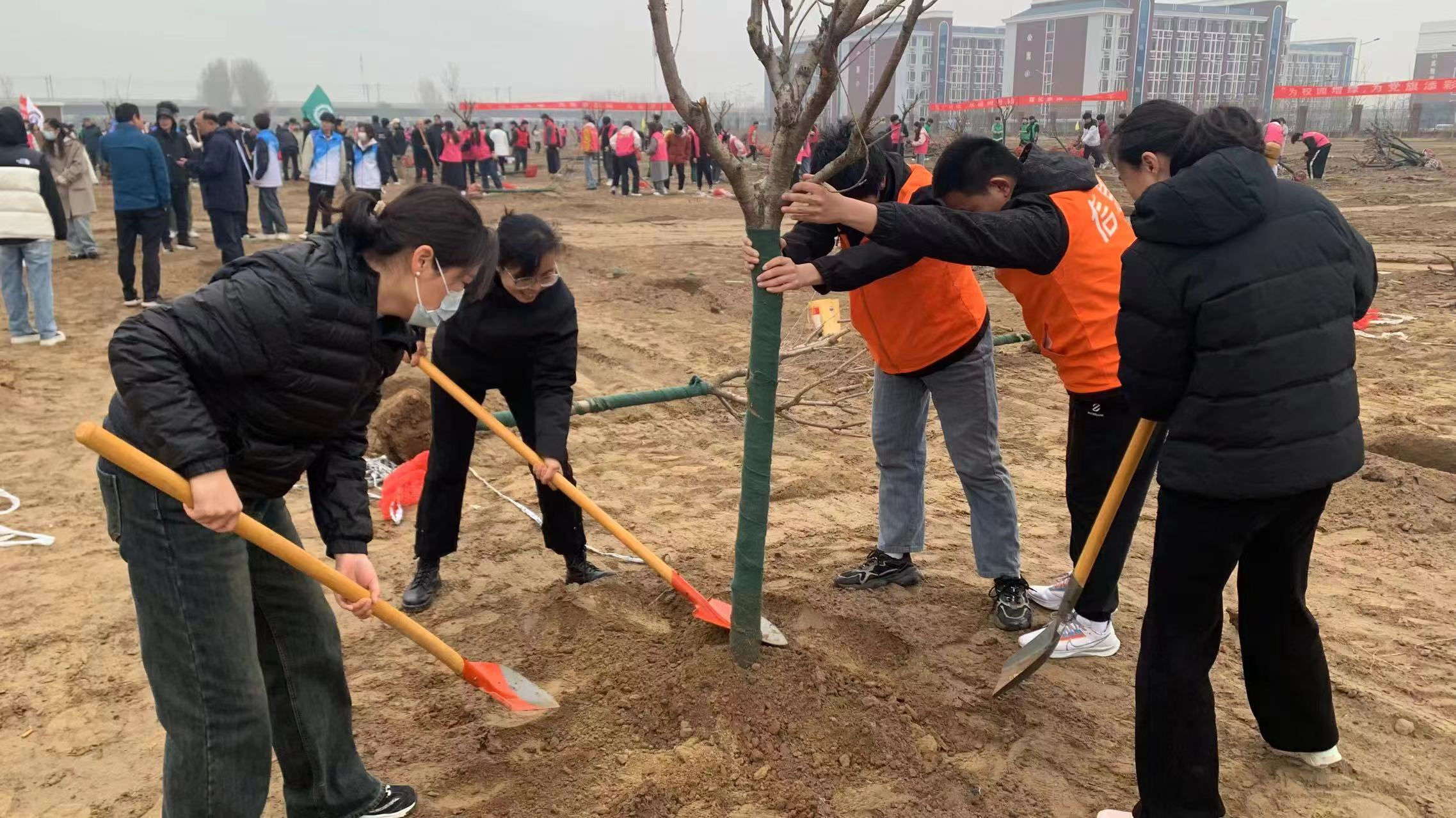 植树现场,师生们纷纷拿起工具,投入到植树活动中。挥锹铲土、扶苗填坑、围堰浇灌……每一个环节都凝聚着大家的汗水和希望。现场热情高涨,大家有序组队、分工协作、默契配合,一丝不苟地完成每一道工序,共同完成了一棵棵树苗的种植。热火朝天的场面、干劲十足的身影,成为春日里一道靓丽的风景线。通过亲自动手,亲身参与,师生们更深刻地感受到了绿色生活的重要性。