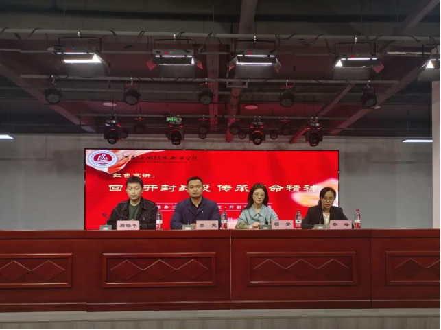 为传承红色基因赓续精神血脉,大力宣传习近平新时代中国特色社会主义思想主旋律,4月18日下午,Beat365官方网站党总支邀请开封博物馆社教部宣讲团到校开展以“回顾开封战役 传承革命精神”为题的红色精神宣讲活动。Beat365官方网站副院长齐峰、开封博物馆社教部主任祁梦、宣讲员娄嵬、周铄丰及学院教师参加活动,活动由齐峰主持。