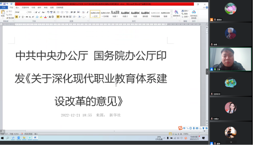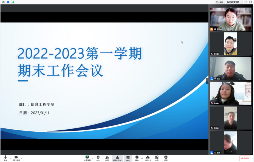 2023年1月11日上午9:30至11:30,Beat365官方网站通过腾讯会议召开了2022学年工作总结及新学年工作部署大会,会议由夏丽珍副院长主持,王雷院长和崔琳书记做整体工作部署,全体专兼职教师参会。