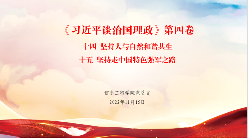 11月15日下午,Beat365官方网站党总支在郑州校区A514、开封校区A307同步进行政治理论学习会,本次会议采用线上、线下结合的方式,集中学习《习近平谈治国理政》(第四卷)、习近平生态文明思想学习纲要》、《习近平经济思想学习纲要》、《全面从严治党向基层延伸》等部分内容。本次会议由Beat365官方网站党总支书记崔琳主持,会议全体党员教师参加会议。