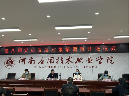 10月20日,河南应用技术职业学院党校第八期党员发展对象培训班开班仪式举行,党委副书记、党校校长蒋清民,党委委员、党委组织部部长、党校副校长常新中,党委委员、开封校区综合服务中心主任、党校副校长刘效平,团委书记李海涛,党委组织部副部长孙丽娜及各党总支、直属党支部书记、188名发展对象参加仪式。根据疫情防控要求,仪式采用“线上+线下”的方式同步进行,本科部党总支书记滕文锐主持仪式。