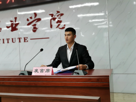 仪式在庄严的国歌声中拉开序幕,本科部2020级学生武鹏宇代表全体学员作表态发言。