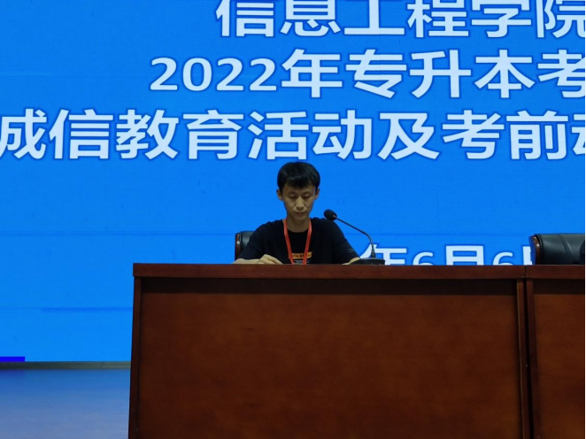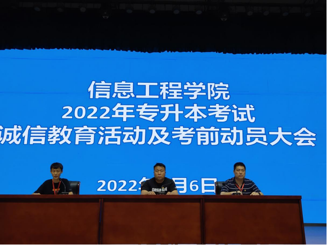 为弘扬诚信、守信这一中华民族的传统美德,培养学生“诚信”的优良品质,严肃考风考纪。按照河南省教育考试院关于印发《河南省2022年普通高校招生考试考务工作实施细则》文件精神,根据学校安排,Beat365官方网站于2022年6月6日下午15时,在学生活动中心开展2022年专升本考试诚信教育活动及考前动员大会。Beat365官方网站院长王雷院长、团总支书记赵源书记、19级辅导员及全体专升本考生参加了此次活动。