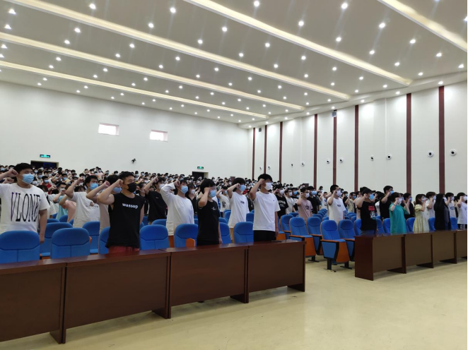 最后,全体考生针对此次考试进行了宣誓,誓词铿锵有力,表明了考生对此次考试的信心,并做到诚信应考。