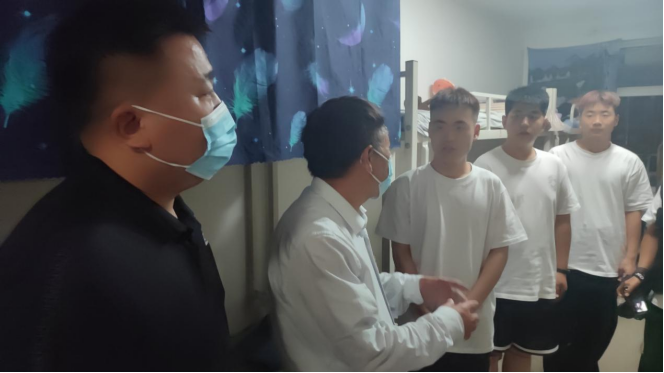 蒋清民一行深入每一间宿舍,和学生进行了深入的交谈,他充分了解学生在封控期间的线上教学情况和生活保障情况,要求学院在做好疫情防控的前提下,强化人文关怀,做好疏导和后勤保障工作,确保学生生活的安全稳定。同时叮嘱同学们:一是要严格按照学校疫情防控的相关要求,加强自我防护,做好个人卫生,佩戴口罩;二是提醒同学们要调整心态,积极配合核酸检测工作,做好每日晨午检;三是认真参加线上学习,保持规律的作息习惯,维护好宿舍和个人安全。最后,还鼓励同学们安心在校学习,遇到困难及时和辅导员、老师沟通交流。