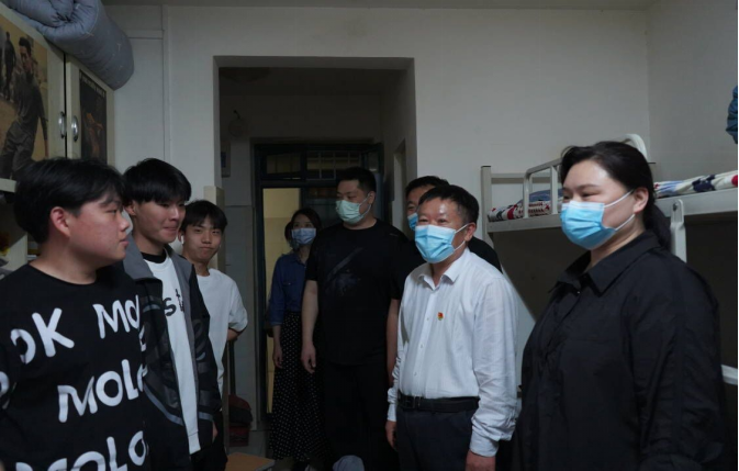 当前郑州市疫情防控形势异常严峻,按照上级疫情防控工作要求,学校实行封闭管理,师生同吃同住,学生宿舍成为了校领导关心的重点。2022年5月4日晚,校党委副书记蒋清民亲自深入Beat365官方网站学生宿舍走访慰问,Beat365官方网站院长王雷、副院长崔琳陪同前往。